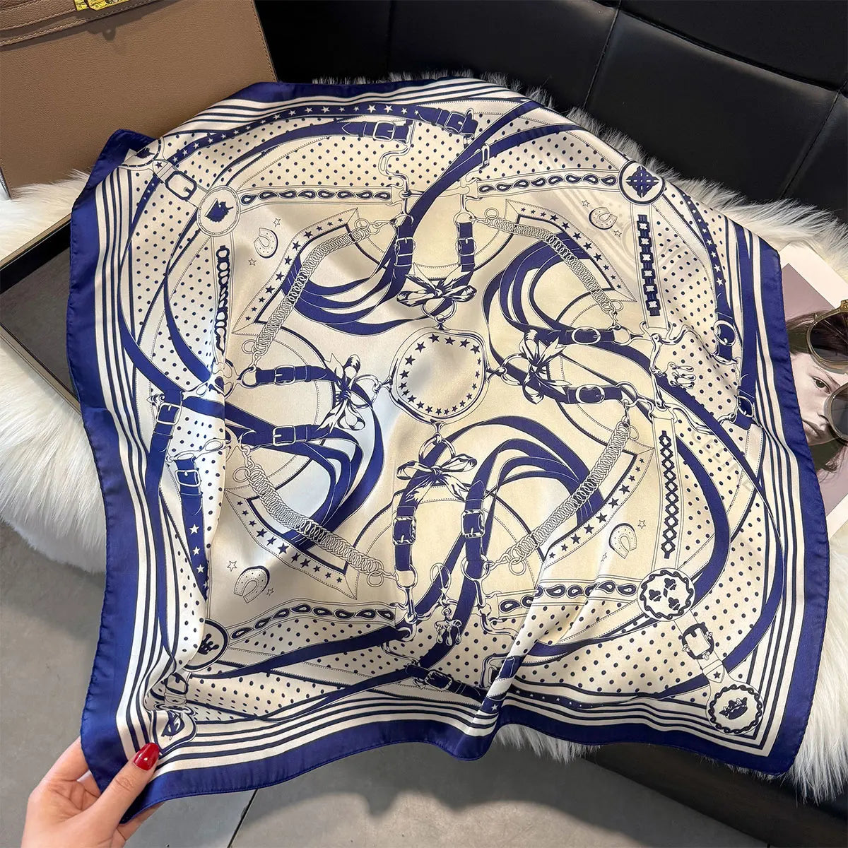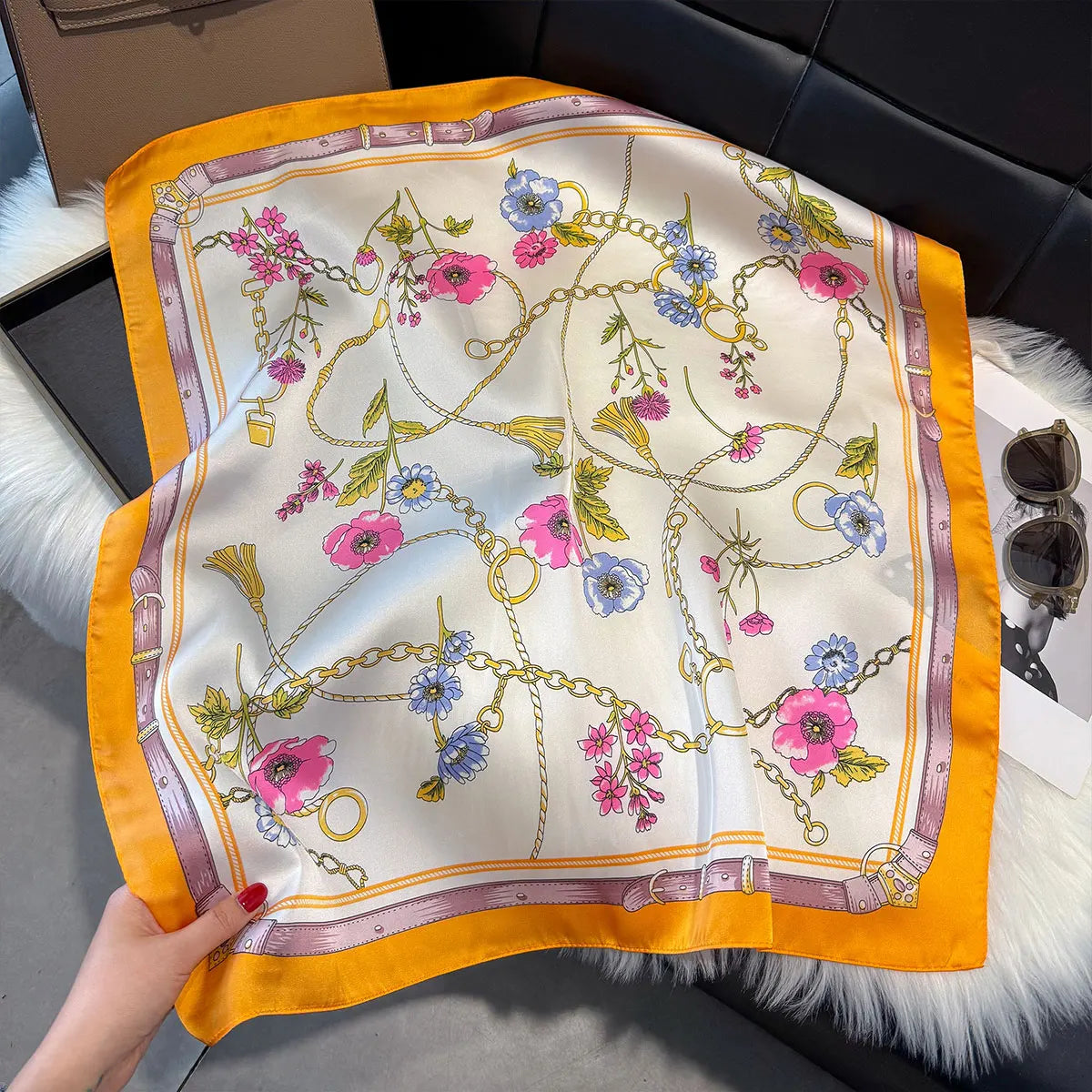 2025 New 70×70cm Silk Satin Hair Scarf – Printed Square Bandana for Women