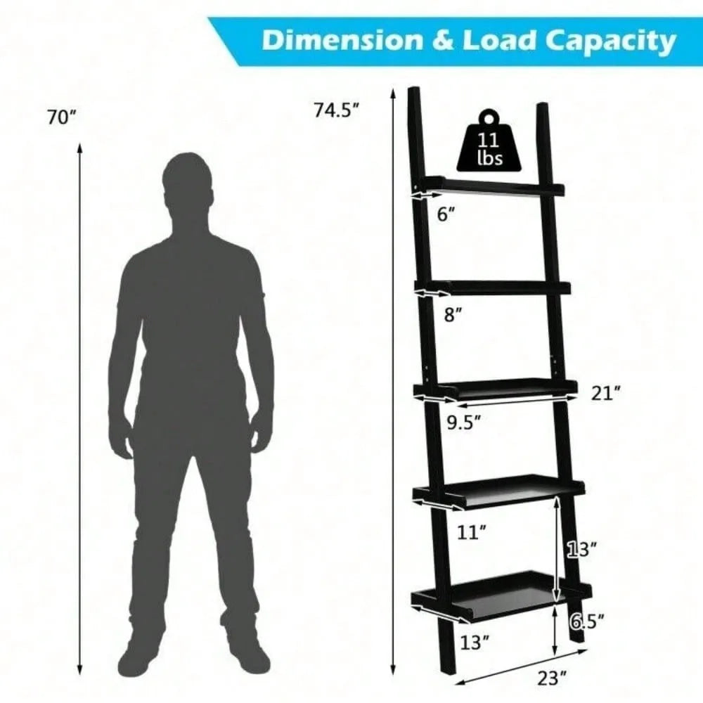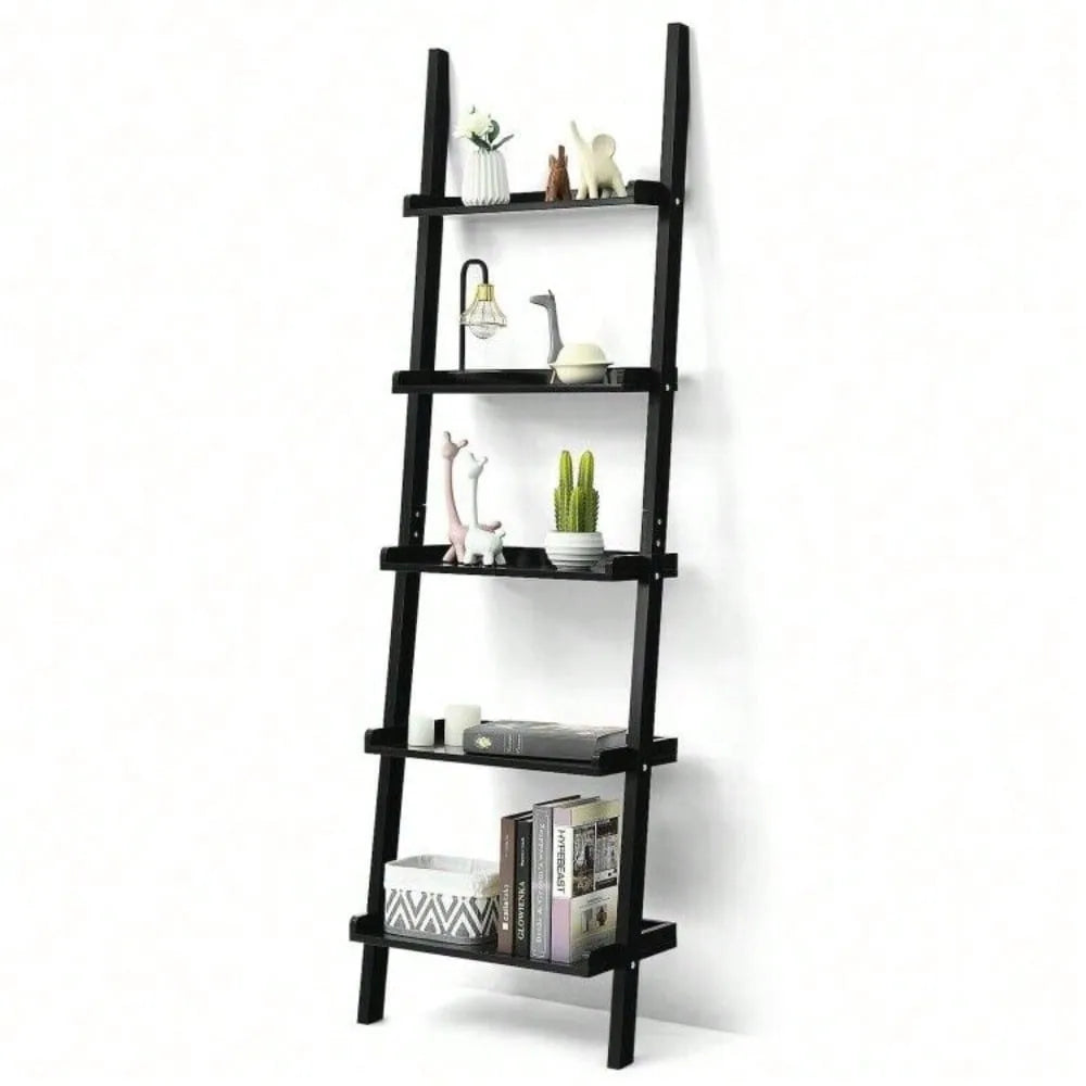 Add a modern touch to your space with this 5-tier leaning ladder bookshelf — a stylish and functional open storage solution perfect for books, décor, and more in any living room or office.