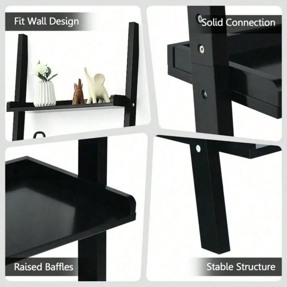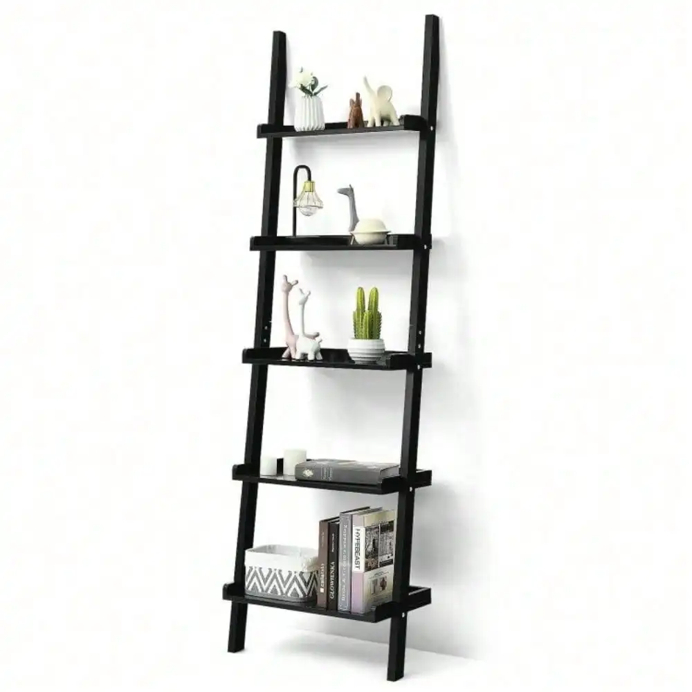 5-Tier Wooden Leaning Ladder Bookshelf – Open Storage Display for Living Room & Office
