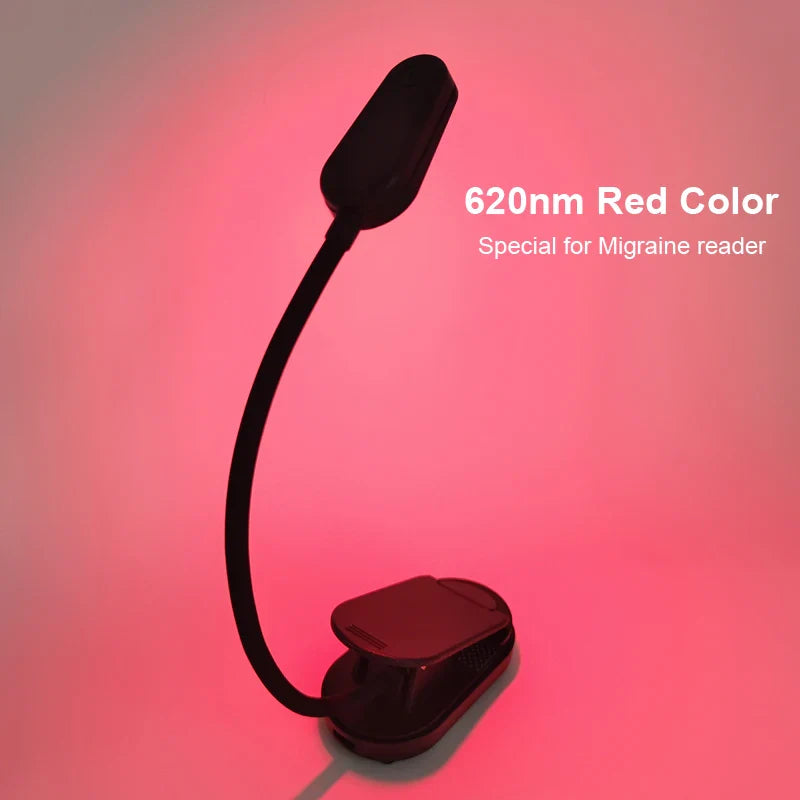 620nm Red Clip-On Book Light – Rechargeable No Blue Light Reading Lamp for Eye Care & Migraine Relief