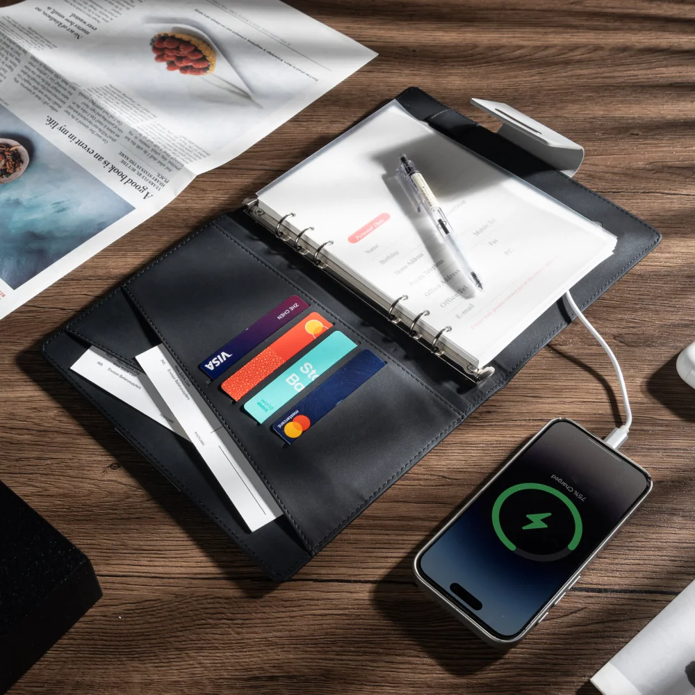 Stay charged and organized wherever you go — get your A5 Charging Notebook today and power through your day with ease!