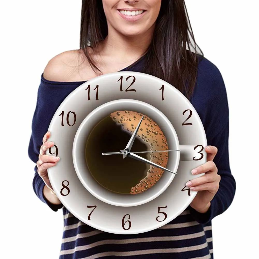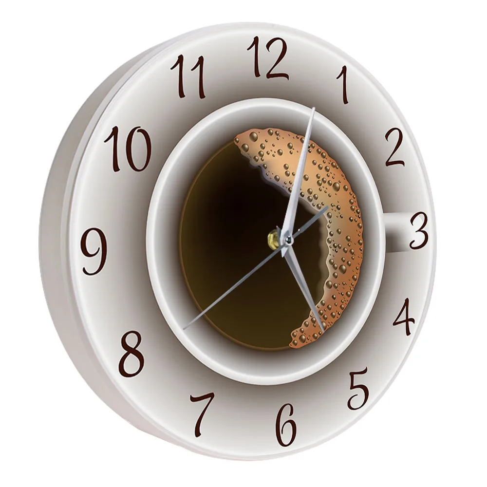 Cup of Coffee with Foam Decorative Silent Wall Clock – Cafe Style Kitchen & Coffee Shop Decor
