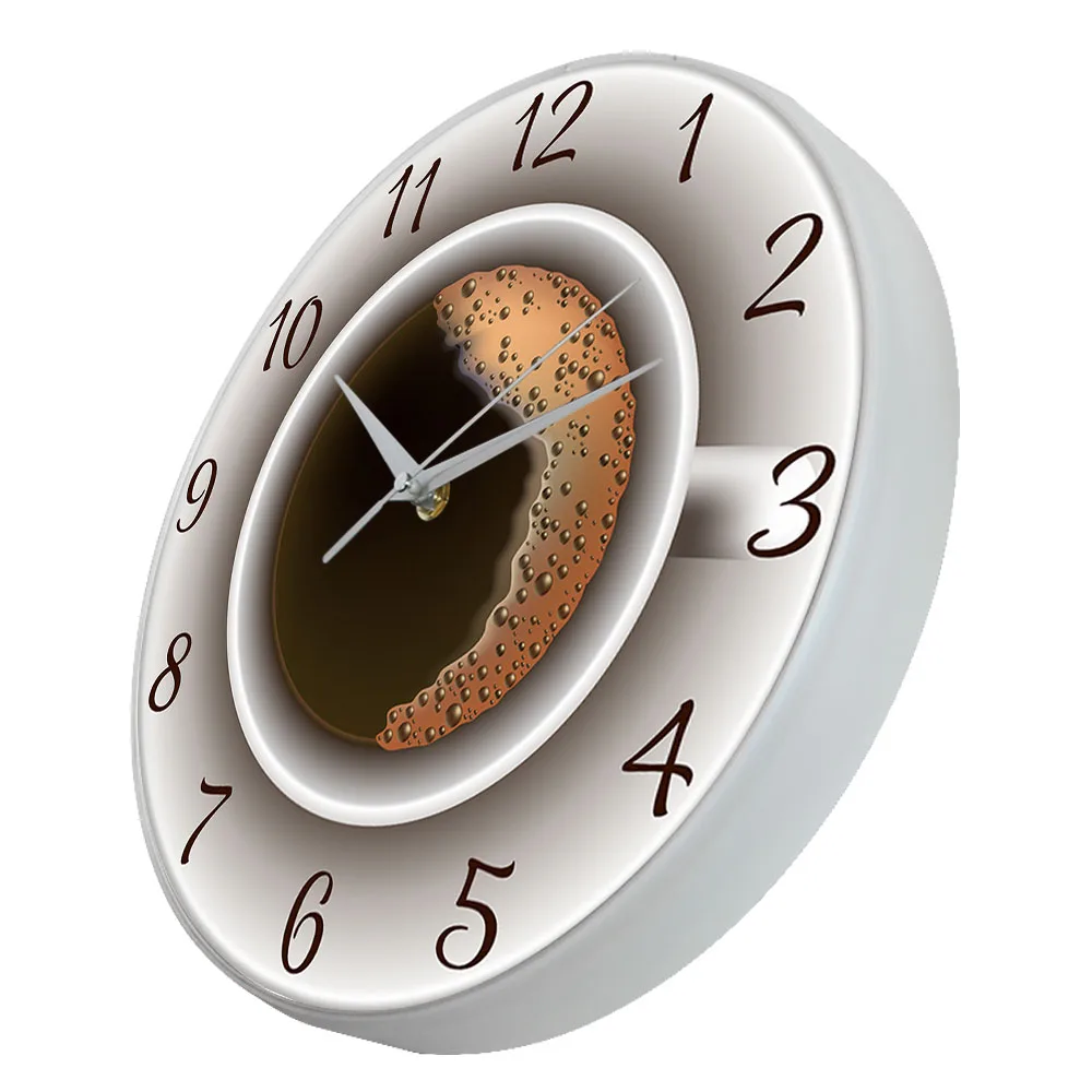 Durable MDF wood and high-quality silent quartz movement with printed coffee art design.