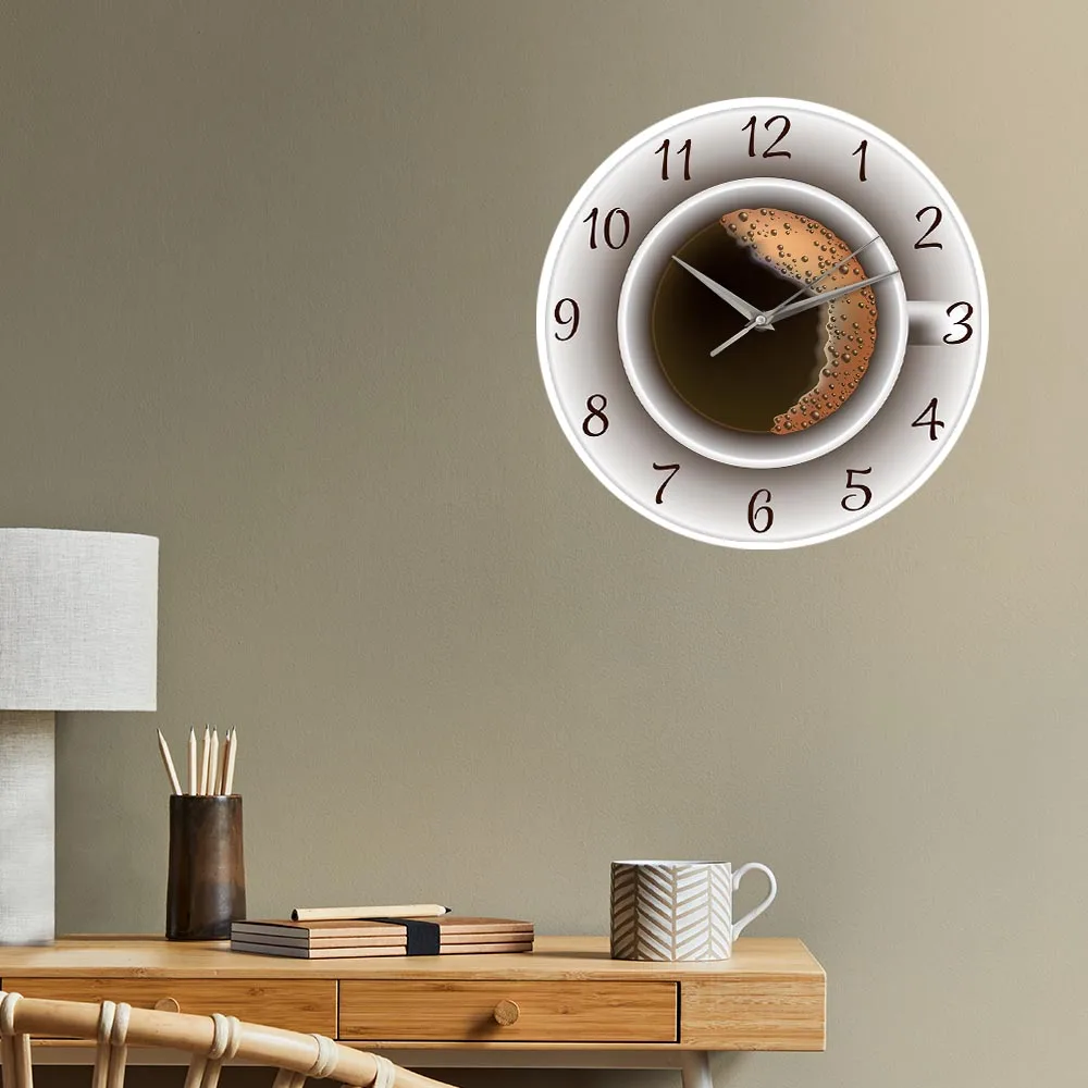 Add a warm and cozy touch to your kitchen or coffee nook with this charming coffee cup-themed wall clock. Perfect for coffee lovers and café-style interiors, it combines function with flavorful flair!