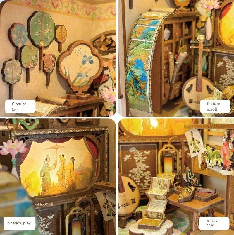 DIY Wooden Book Nook – Chinese Musical Instrument Cottage Miniature Kit