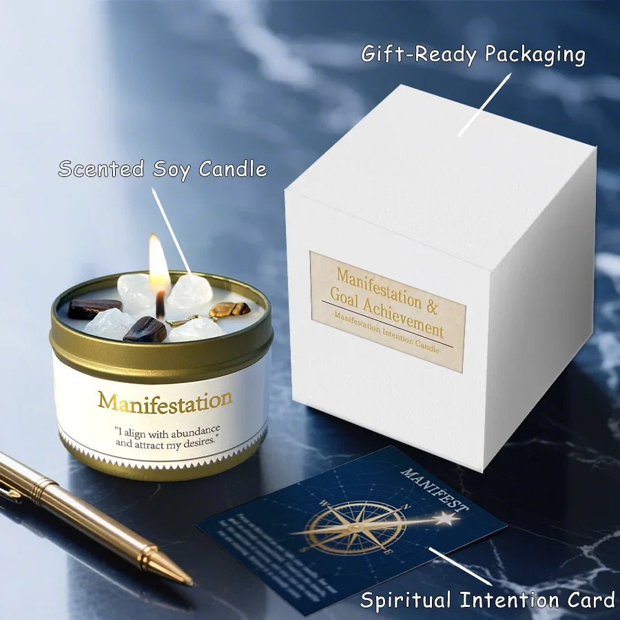 Law of Attraction Manifestation Candle – 3oz Crystal Ritual Scented Soy Candle