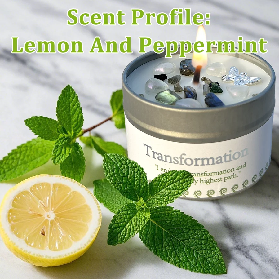 Clean-burning soy wax with calming, uplifting fragrance notes