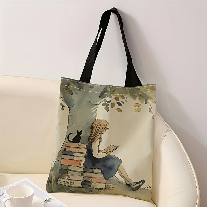 Book Girl Printed Casual Tote Bag – Reusable Shoulder Backpack for Everyday Use