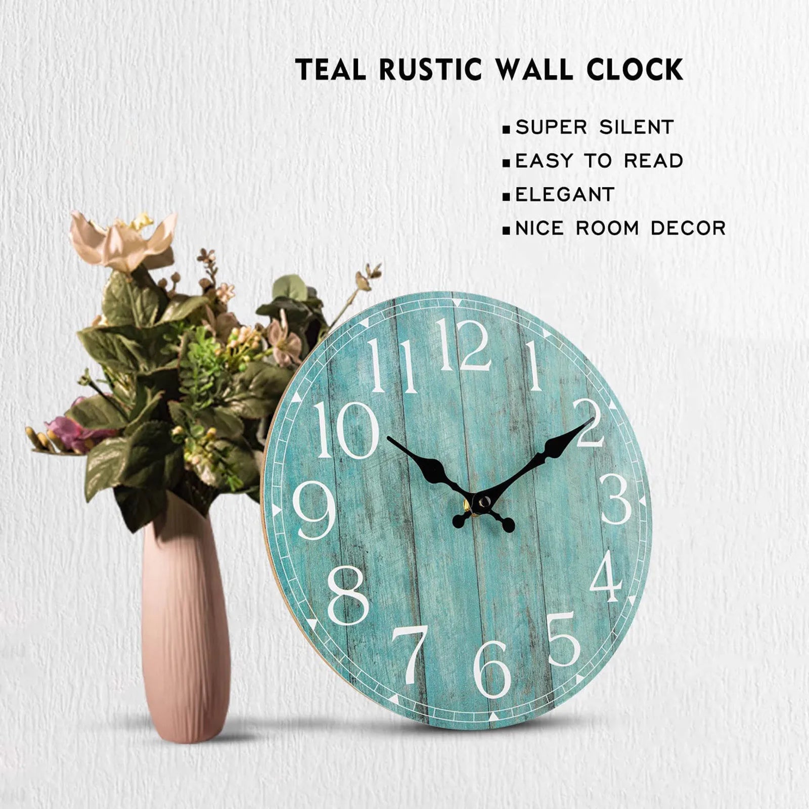 Tea Green Farmhouse Wall Clock – Silent Non-Ticking Turquoise Clock for Kitchen, Office & Home Decor