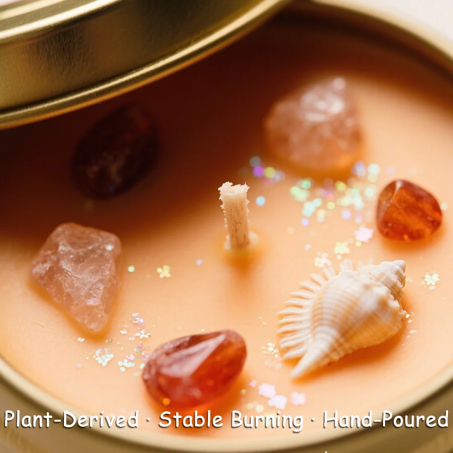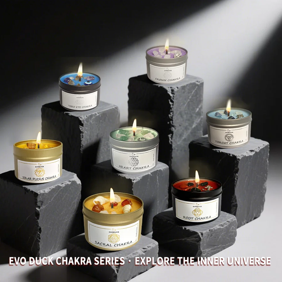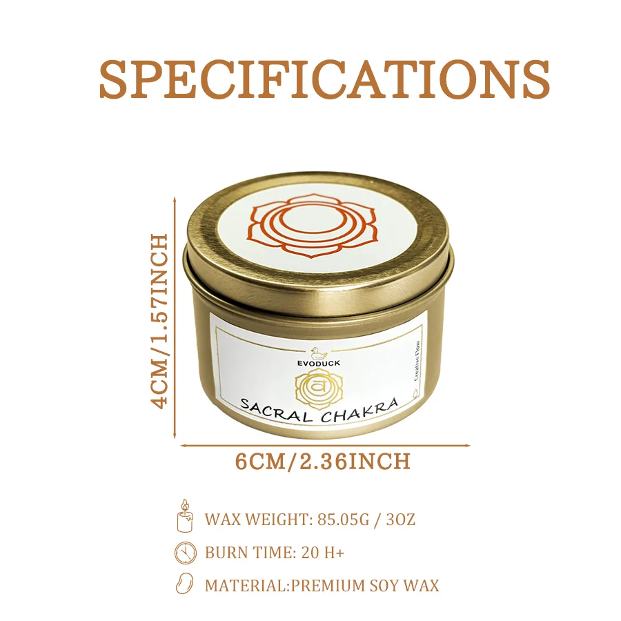 Natural soy wax blended with sweet orange essential oil, hand-poured into a reusable tin. Includes a chakra guide card.