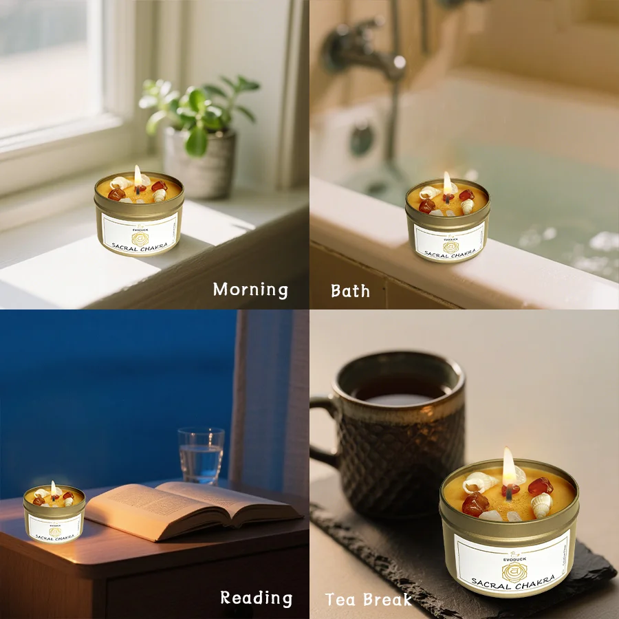 Balance your energy and brighten your space — light the Sacral Chakra candle and reconnect with your inner joy.