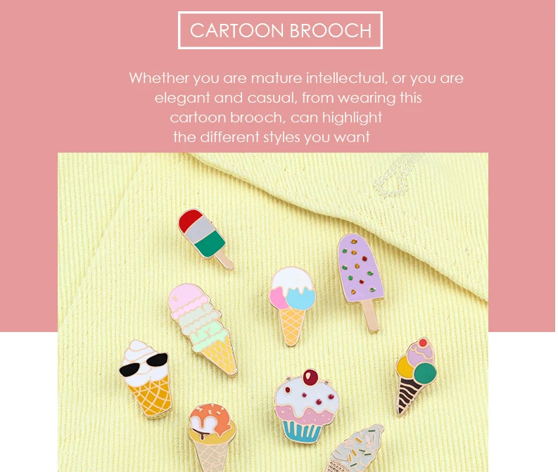 Sweet Cartoon Enamel Pins – Cute Ice Cream Lapel Brooches