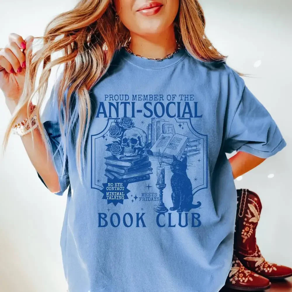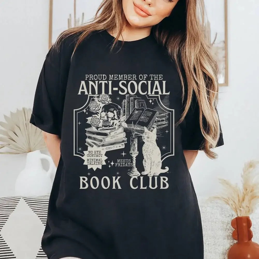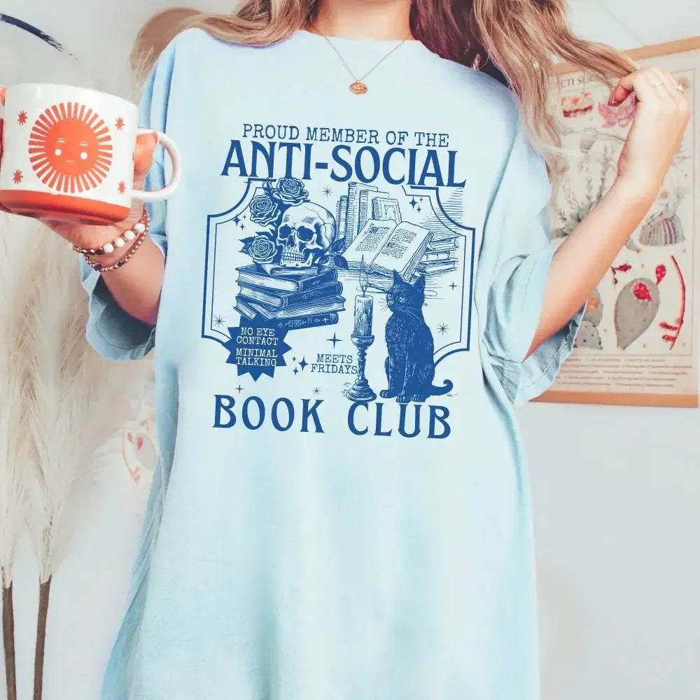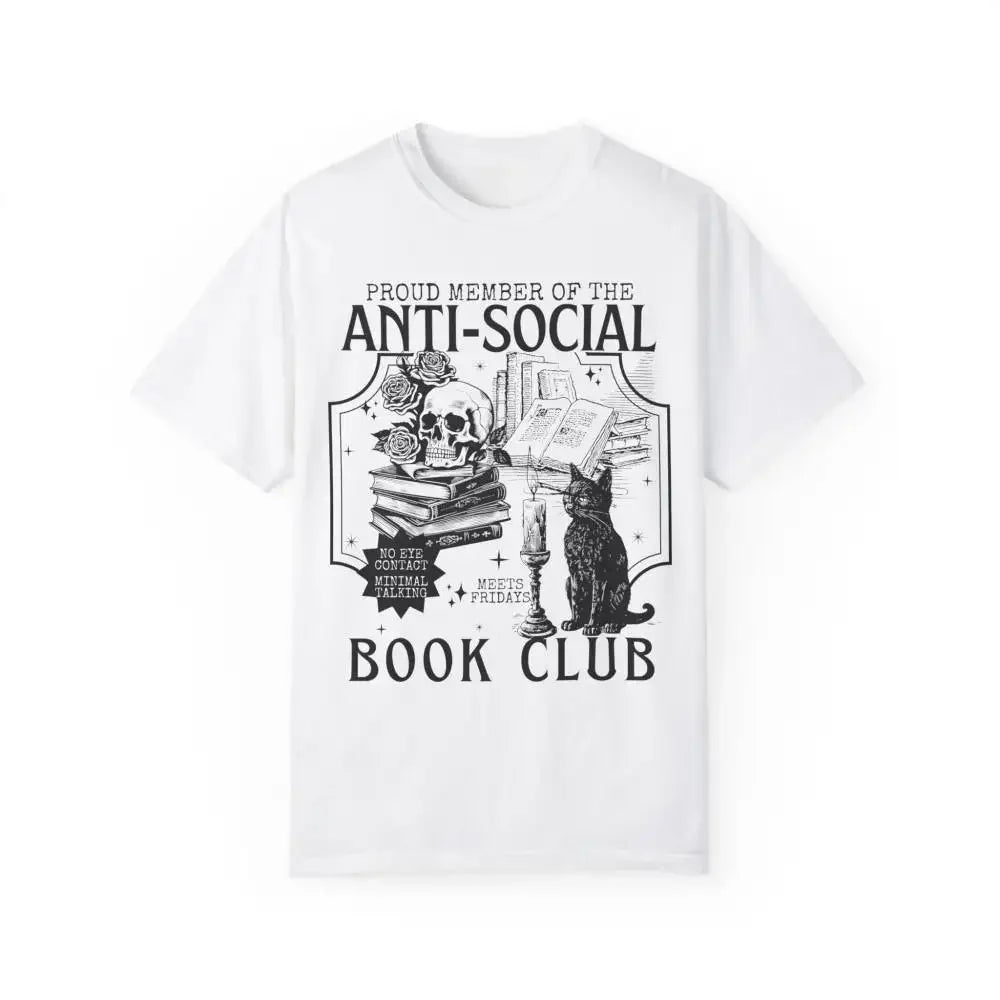 Retro typography and book-themed print with “Anti-Social Book Club” flair