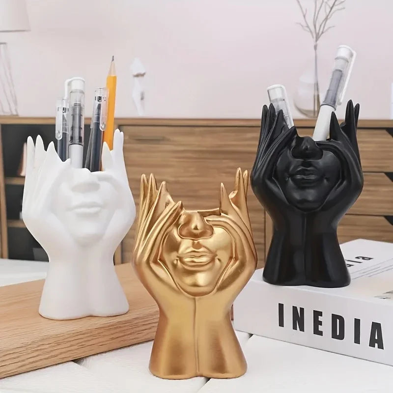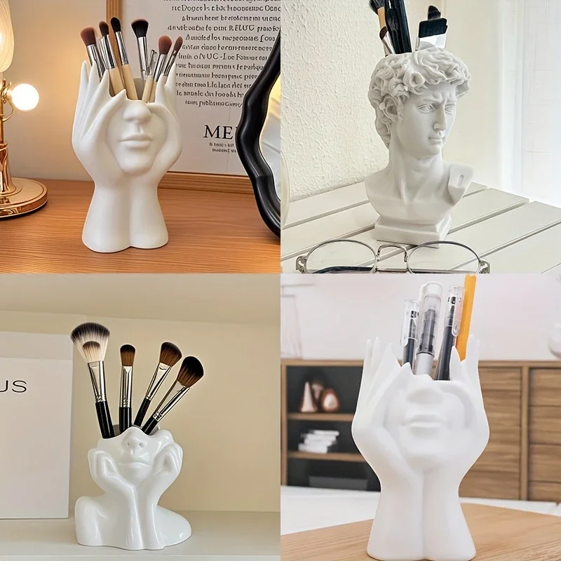 Bring artistic flair to your space with this unique David statue pen holder — a multifunctional organizer perfect for makeup brushes, pens, or art supplies in home, office, or studio settings.