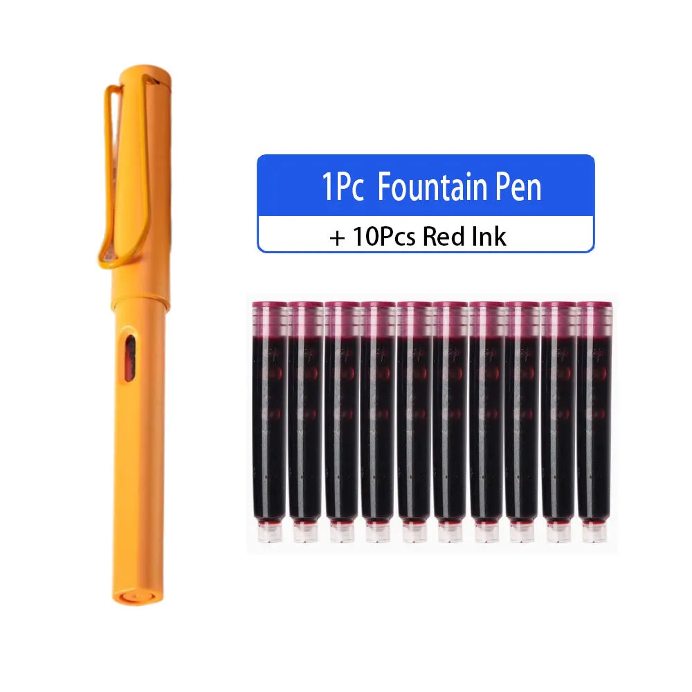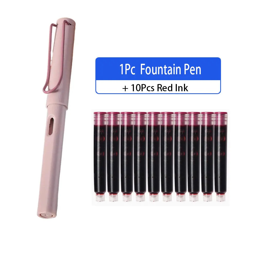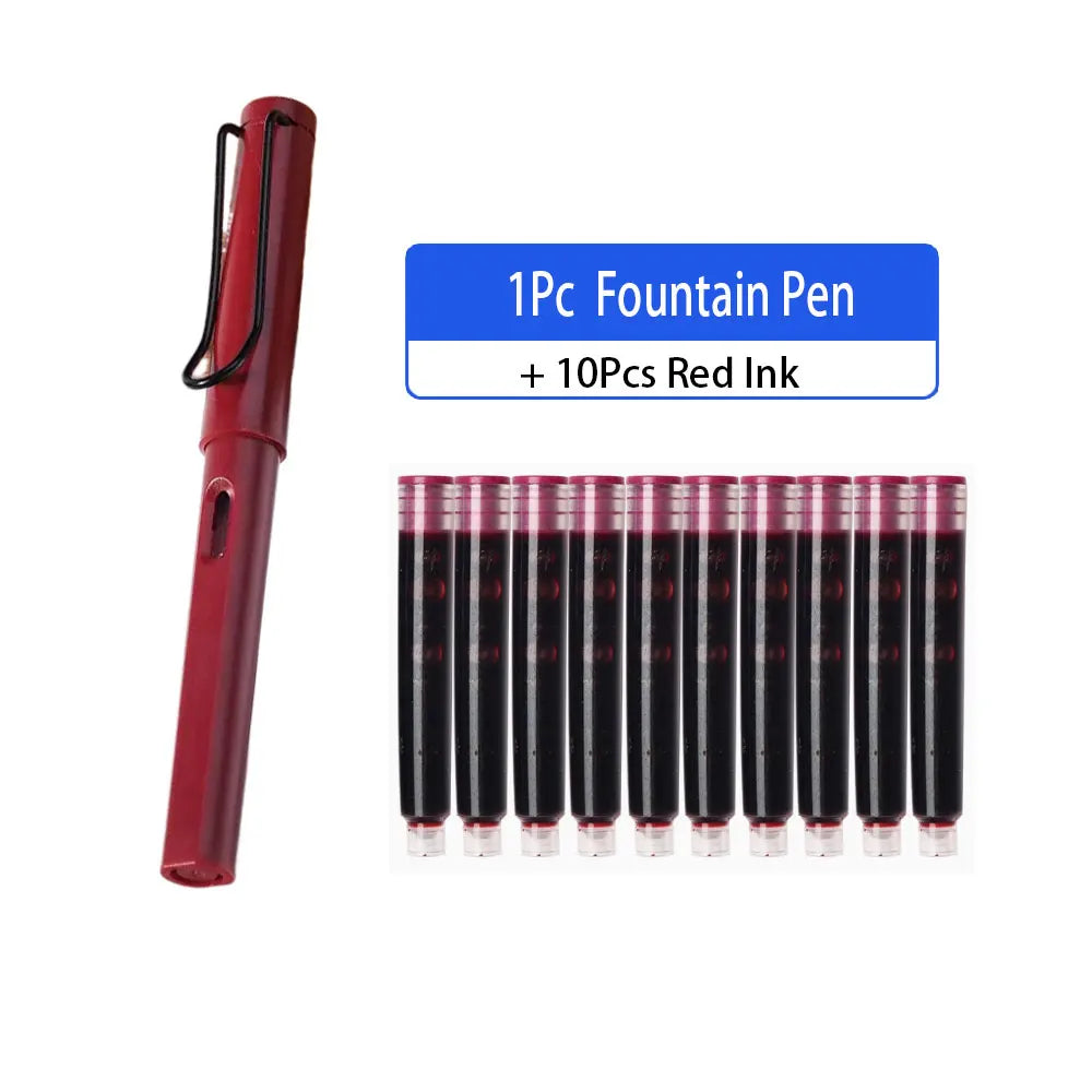 Elevate your writing experience with this premium inking pen set, featuring a smooth-writing fountain pen and 10 ink cartridges in your choice of black, blue, or red — perfect for office, school, or personal use.