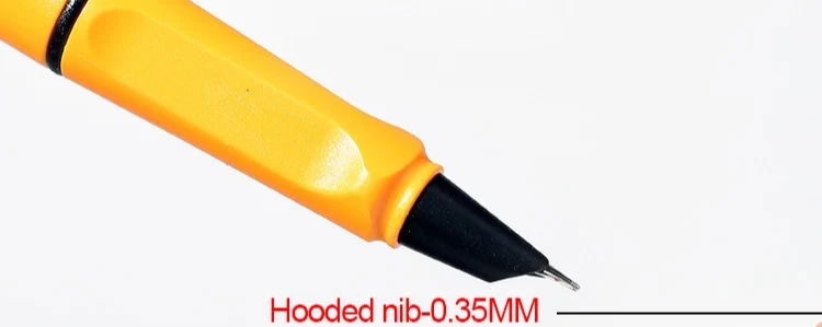 Durable ABS resin body with a stainless steel nib and quick-drying ink cartridges.