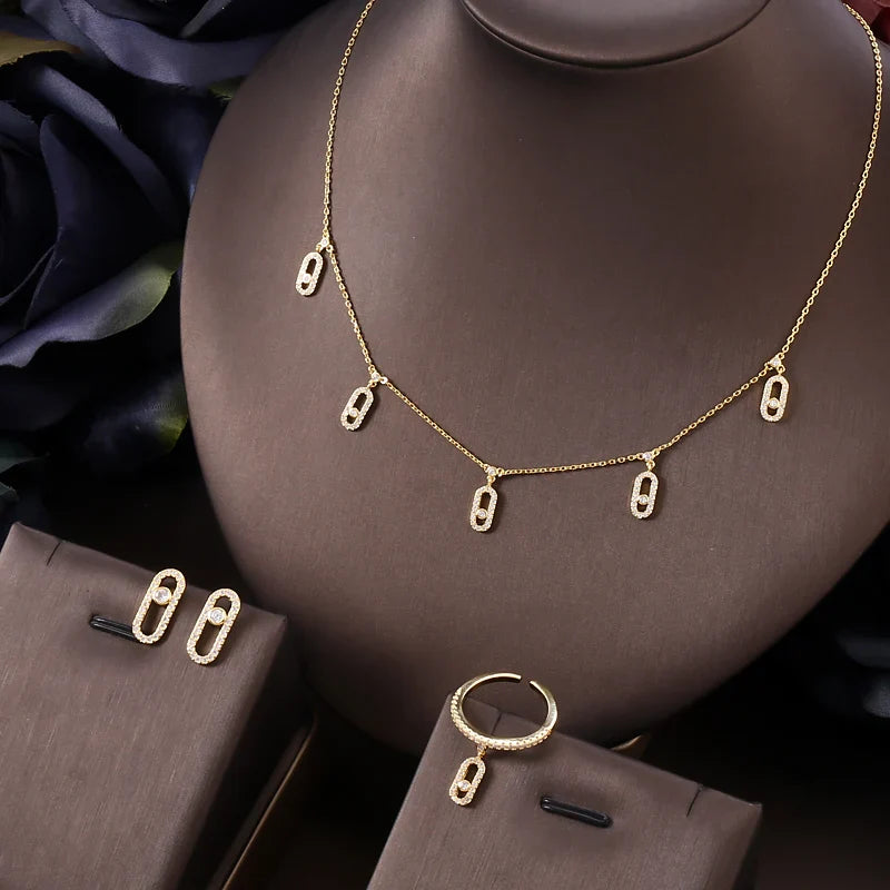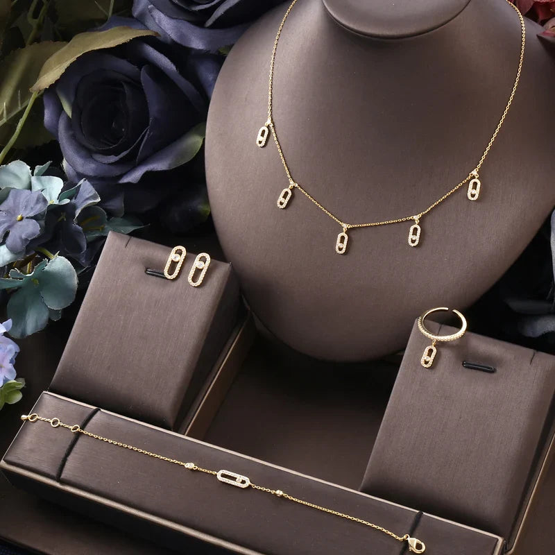 Complete 4-piece set: Includes necklace, earrings, bracelet, and matching ring