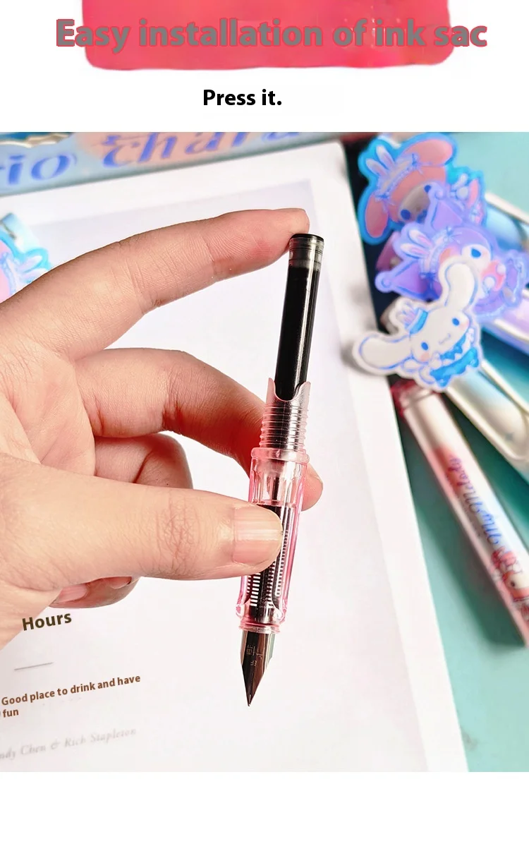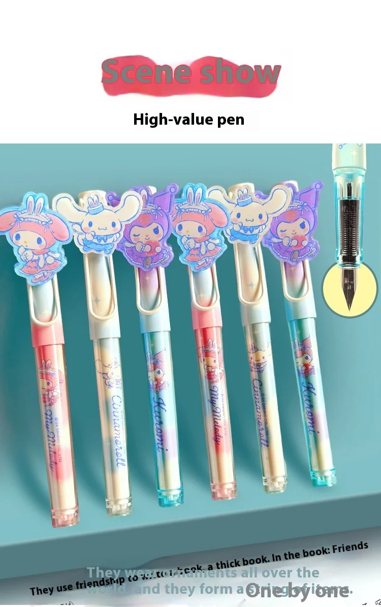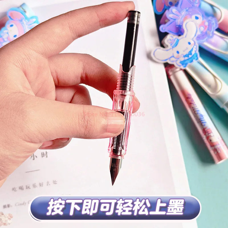 New Cartoon Kuromi & My Melody Calligraphy Practice Pens – Replaceable Ink for Elementary Students