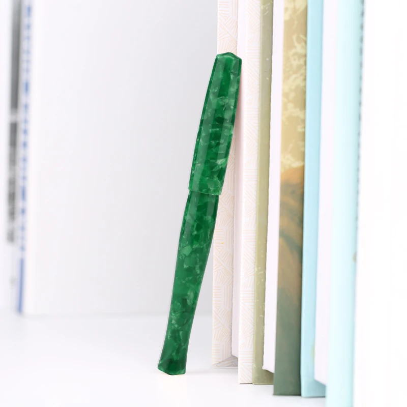 Richly colored celluloid-style acrylic body – each pen has a unique marbled pattern