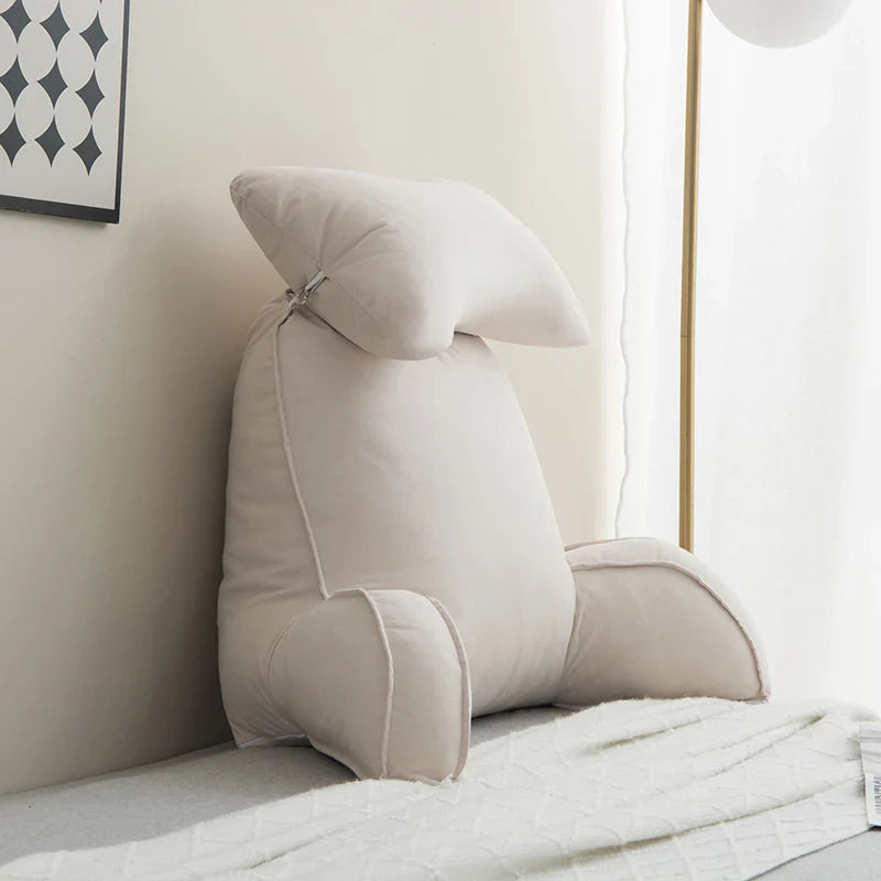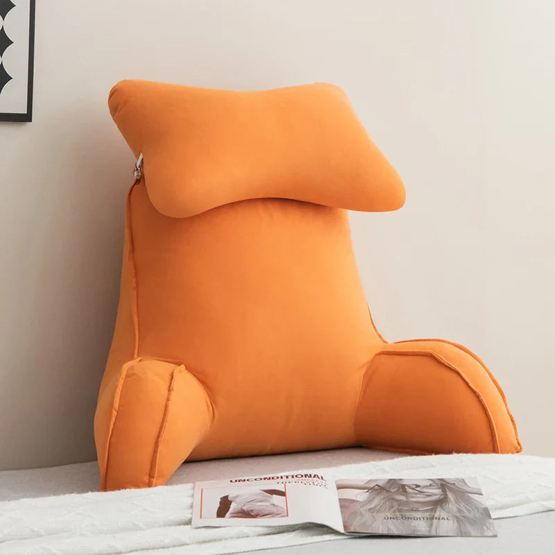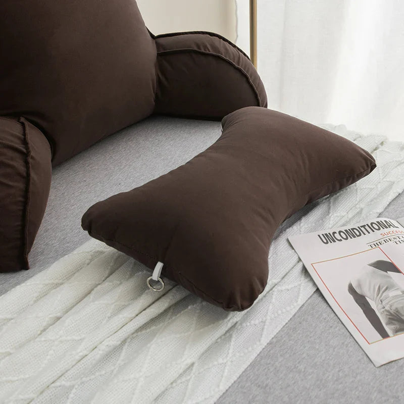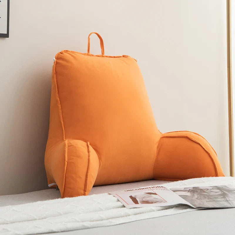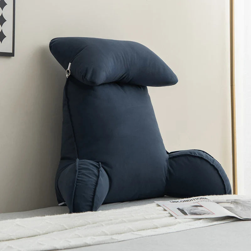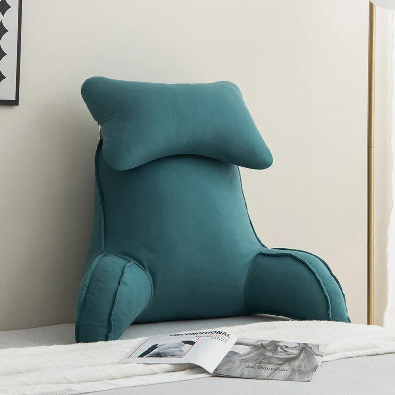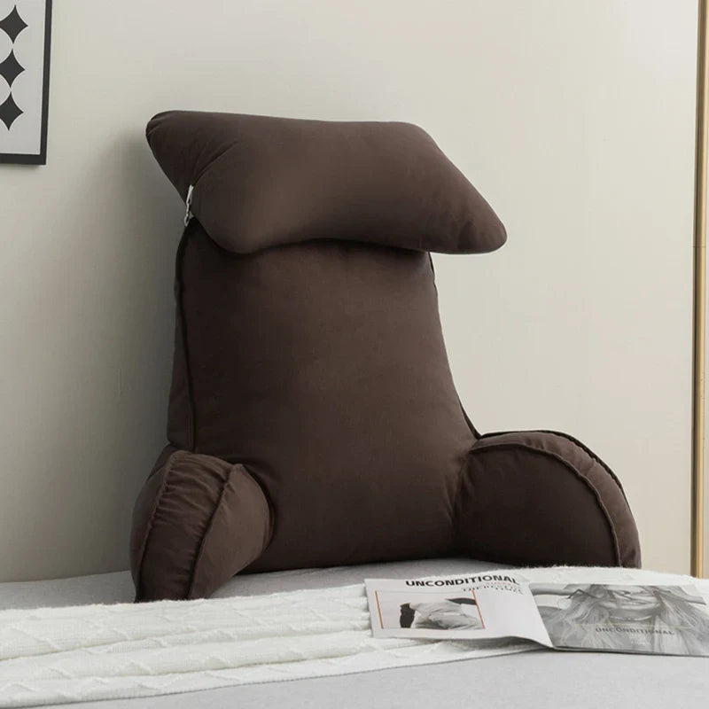 Reading Pillow for Bed – Memory Foam Backrest with Arms & Side Pockets for Adults