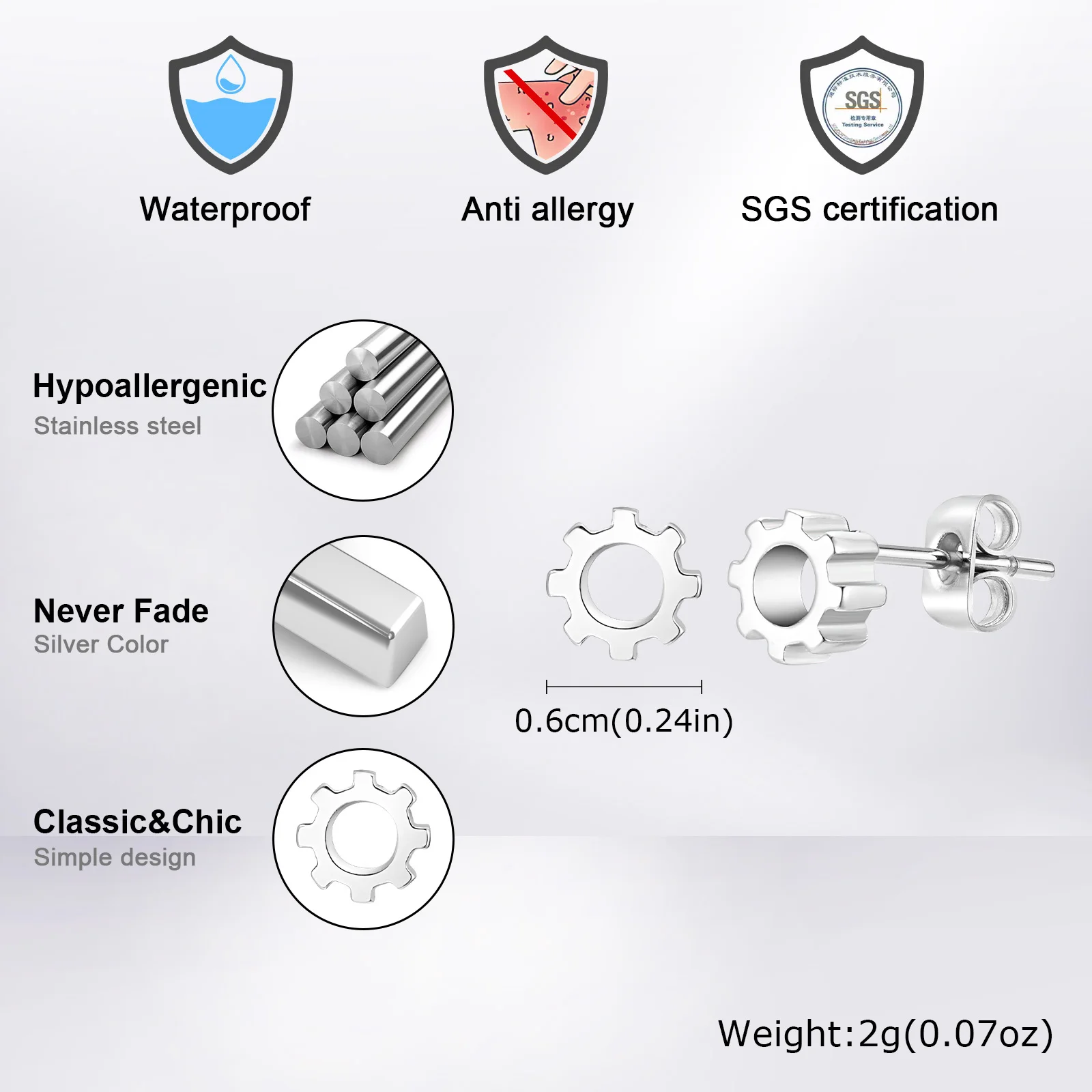 Add a bold industrial edge to your look with these Stainless Steel Gear Stud Earrings — waterproof, anti-allergy, and made for men and boys who appreciate punk rock style and durable design.