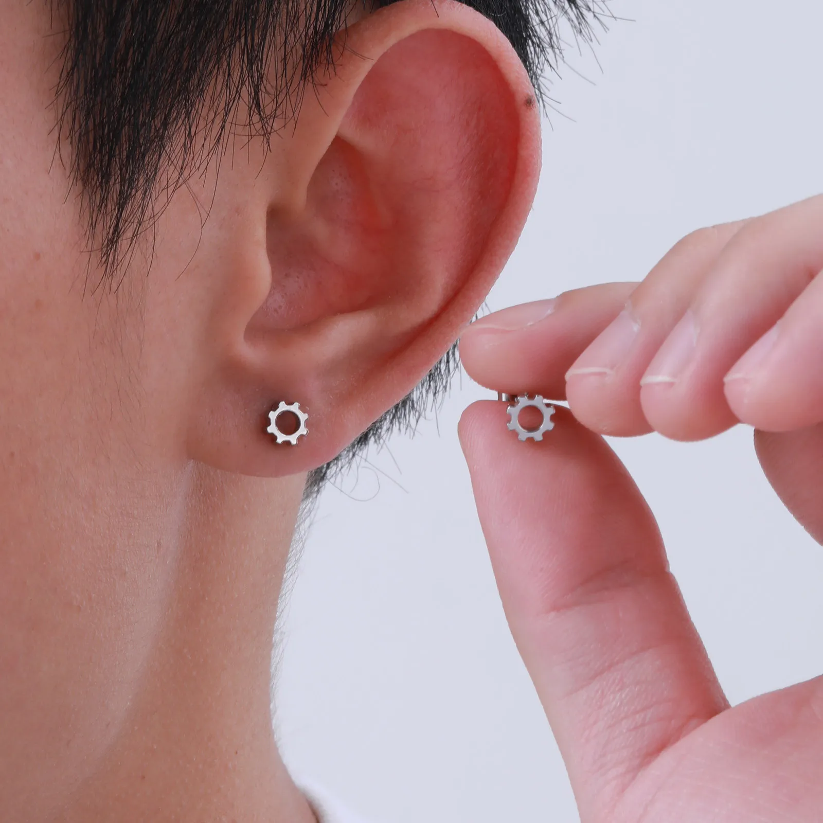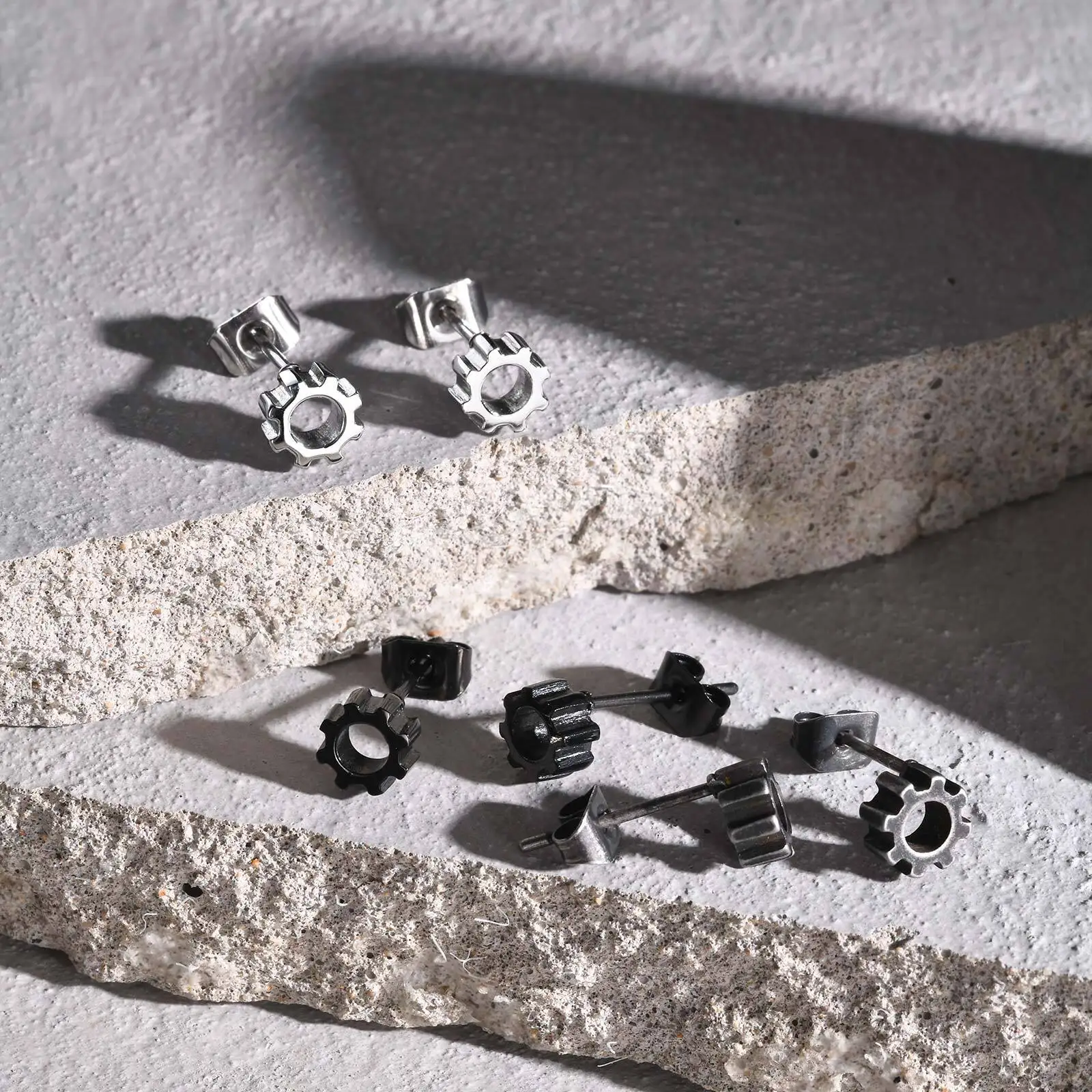 Stainless Steel Gear Stud Earrings for Men & Boys – Punk Rock Ear Jewelry