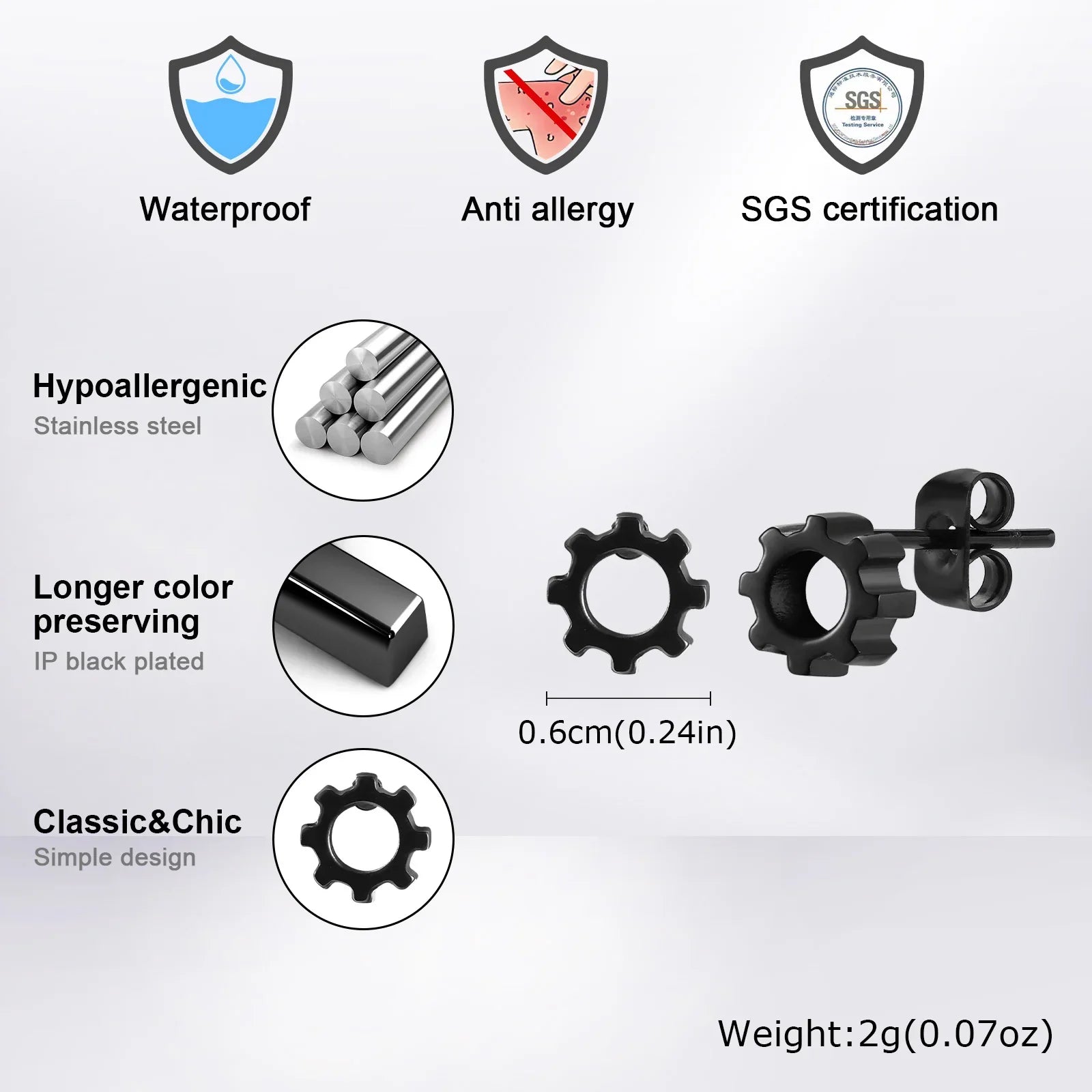 High-quality stainless steel – rust-resistant, hypoallergenic, and waterproof.