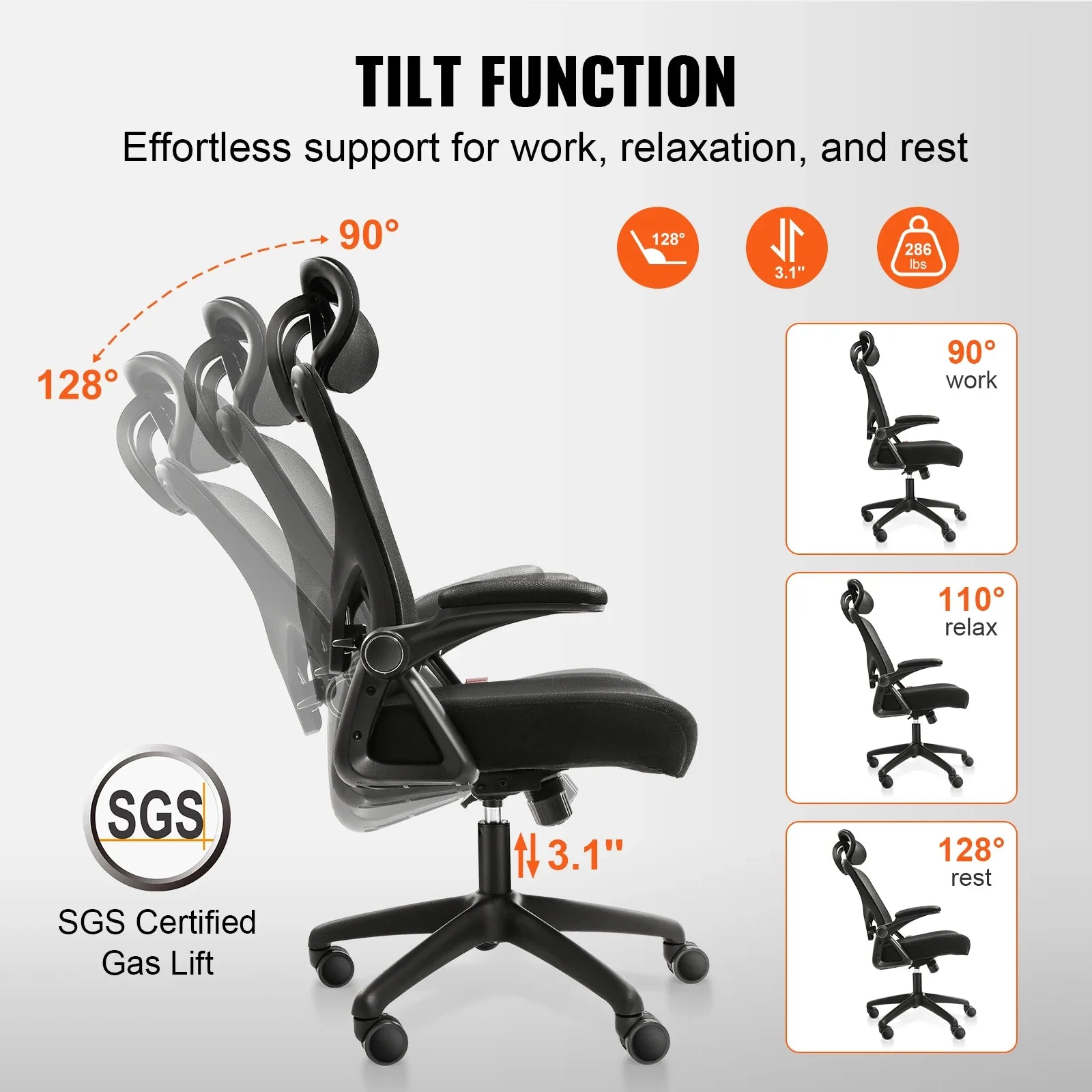 Upgrade your workspace with the VEVOR Ergonomic Office Chair — where functionality meets all-day comfort!