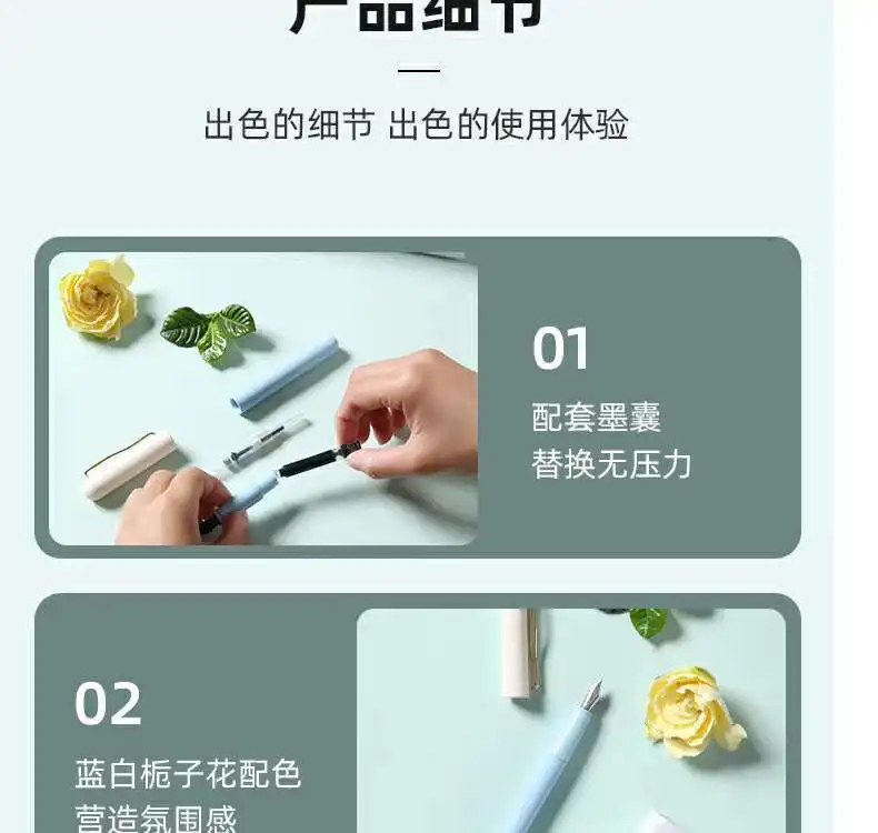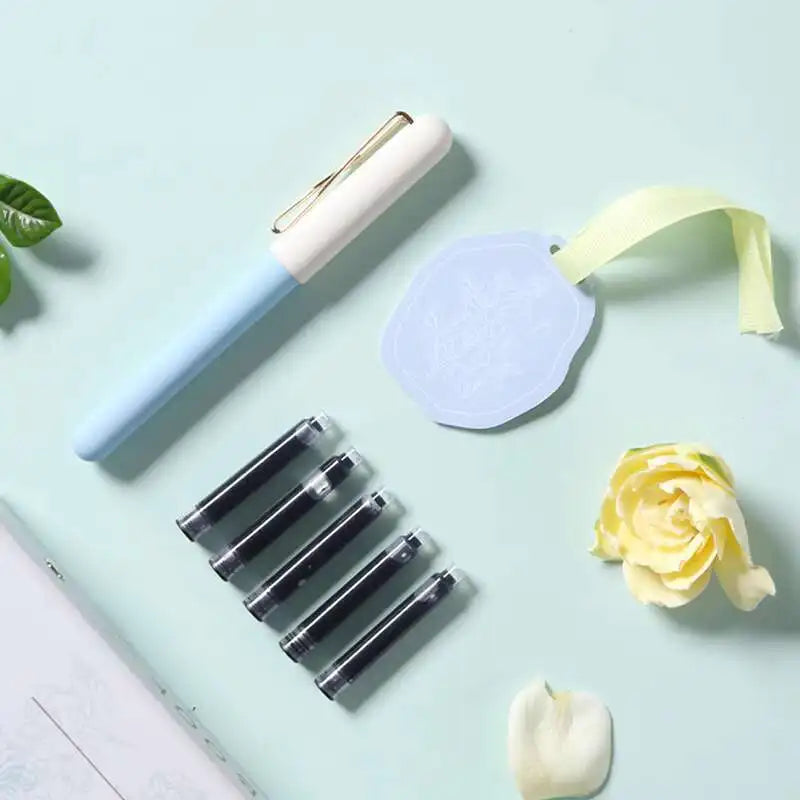 Gardenia Blooming Fountain Pen Gift Set – Elegant EF Nib with Black Ink Cartridges