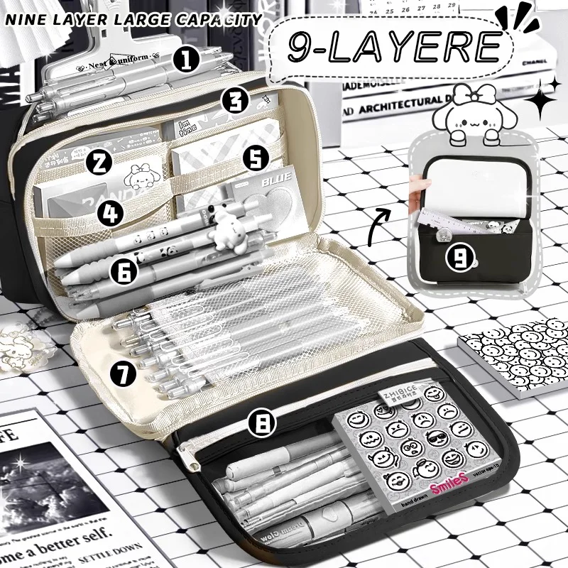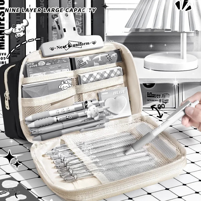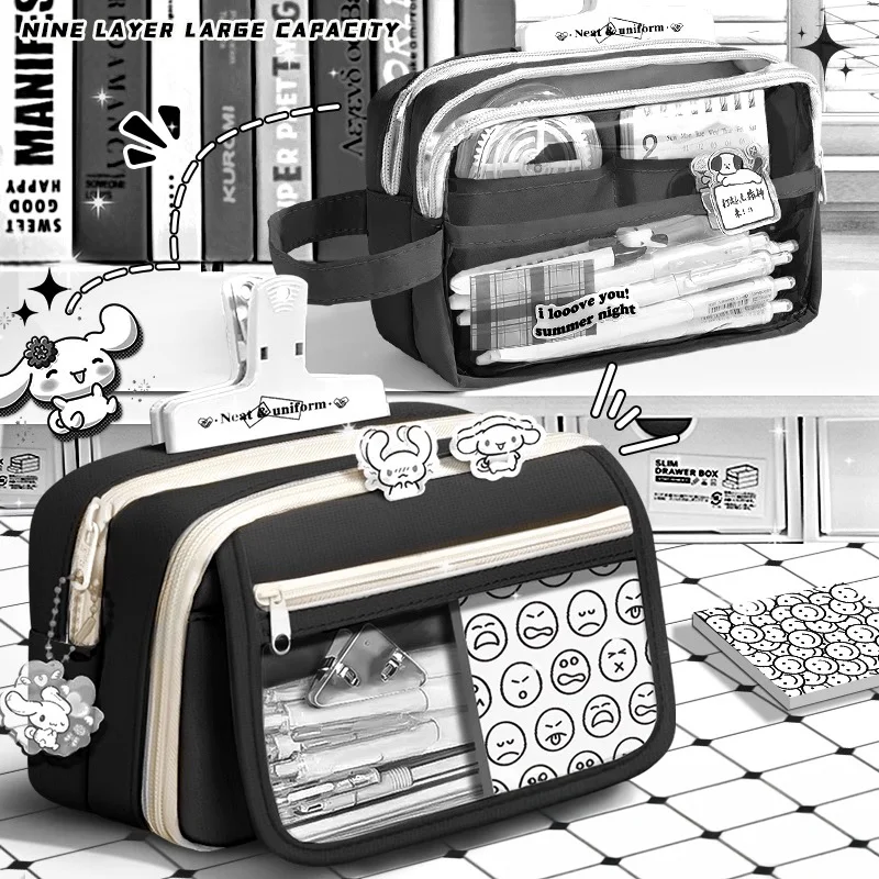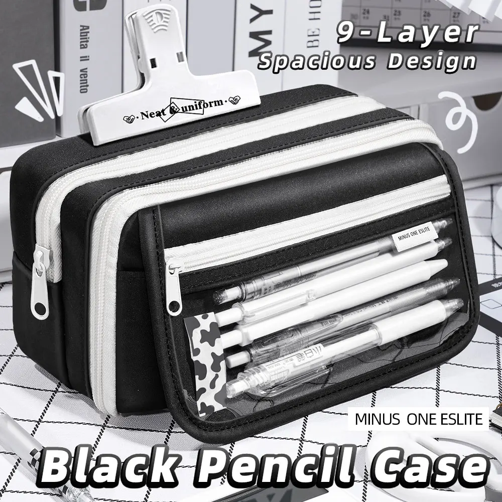 Inkpals Black Pencil Case – Large Capacity Kawaii School Organizer for Kids