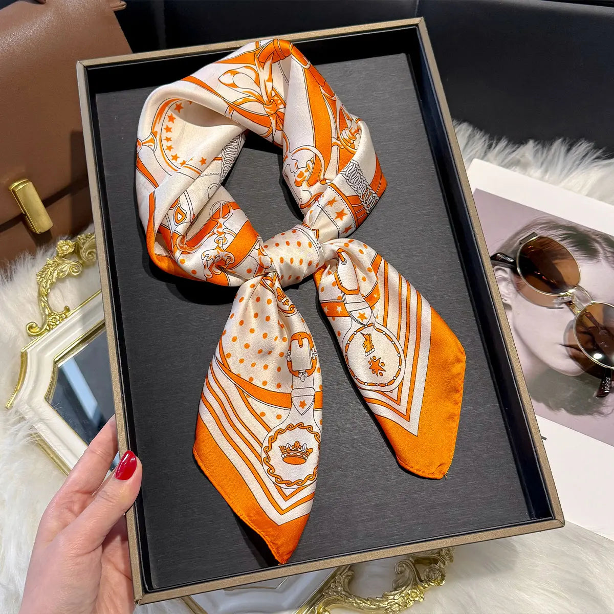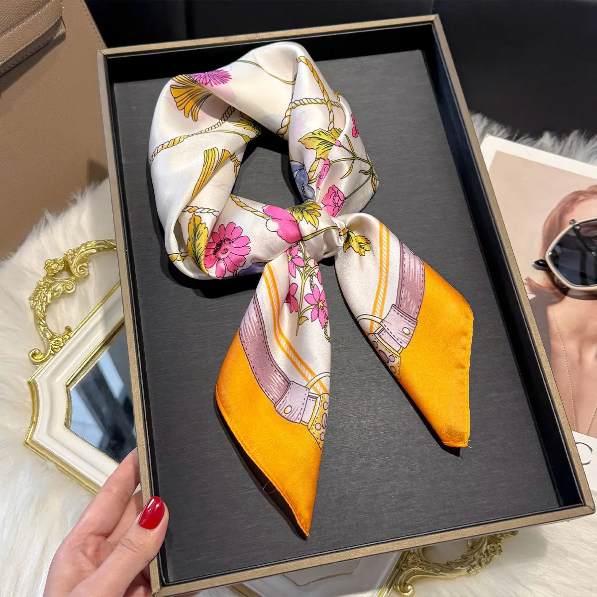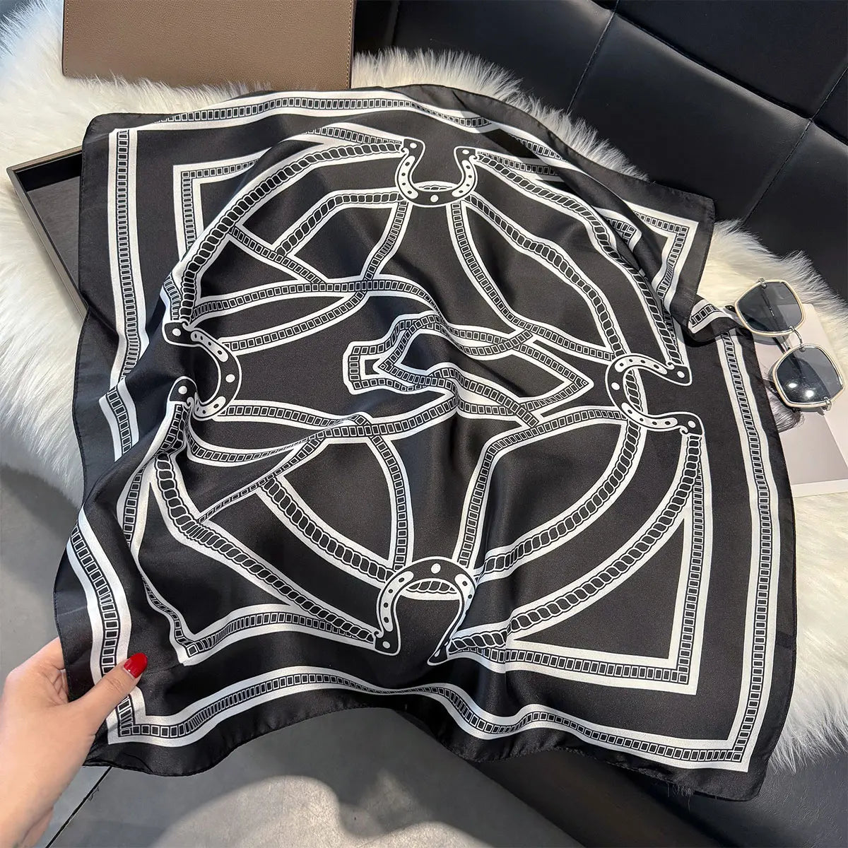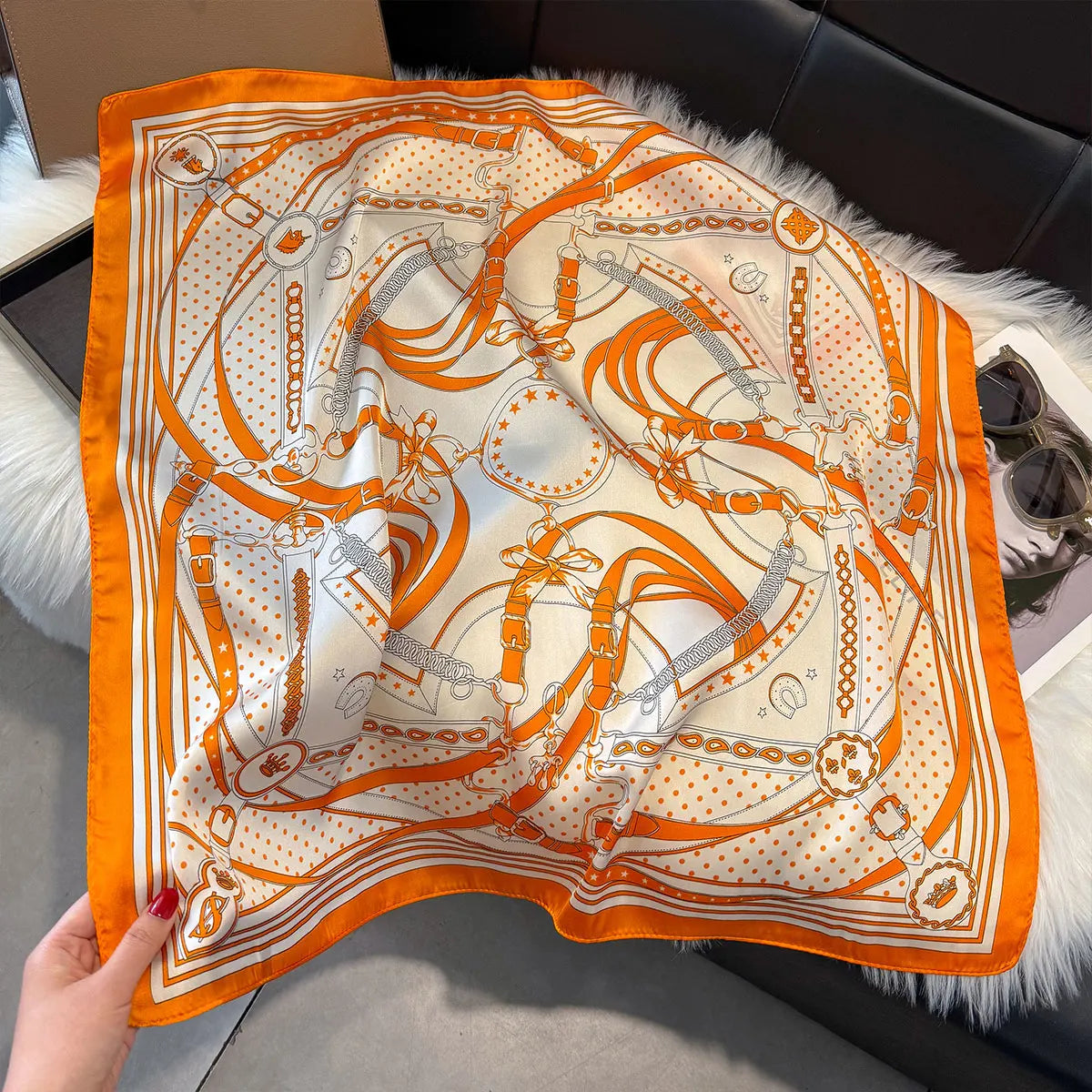2025 New 70×70cm Silk Satin Hair Scarf – Printed Square Bandana for Women