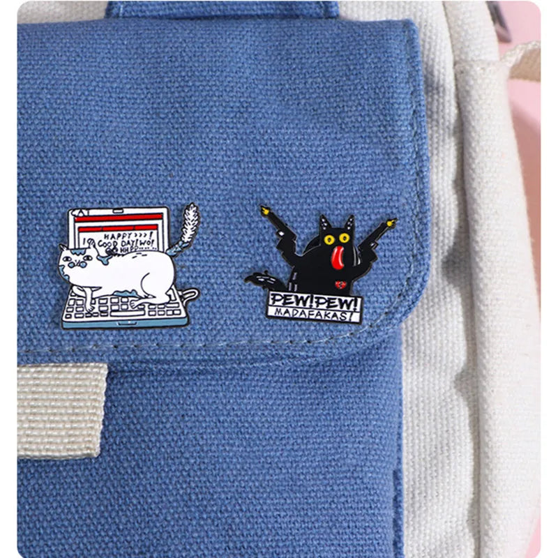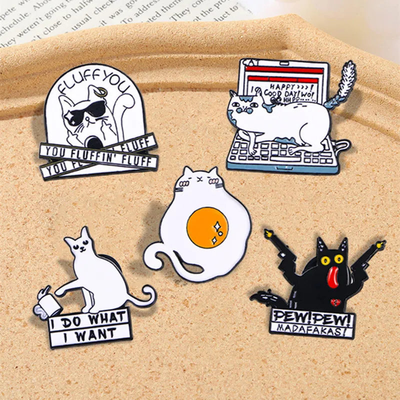 5PCS Cartoon Black & White Punk Enamel Pins – Funny Lapel Badges for Backpacks, Hats & Clothing