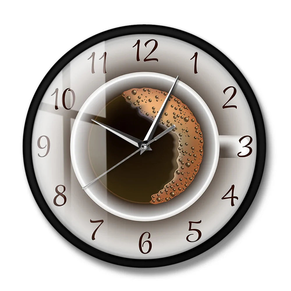 Cup of Coffee with Foam Decorative Silent Wall Clock Kitchen Decor Coffee Shop Wall Sign Timepiece Cafe Style Hanging Wall Watch