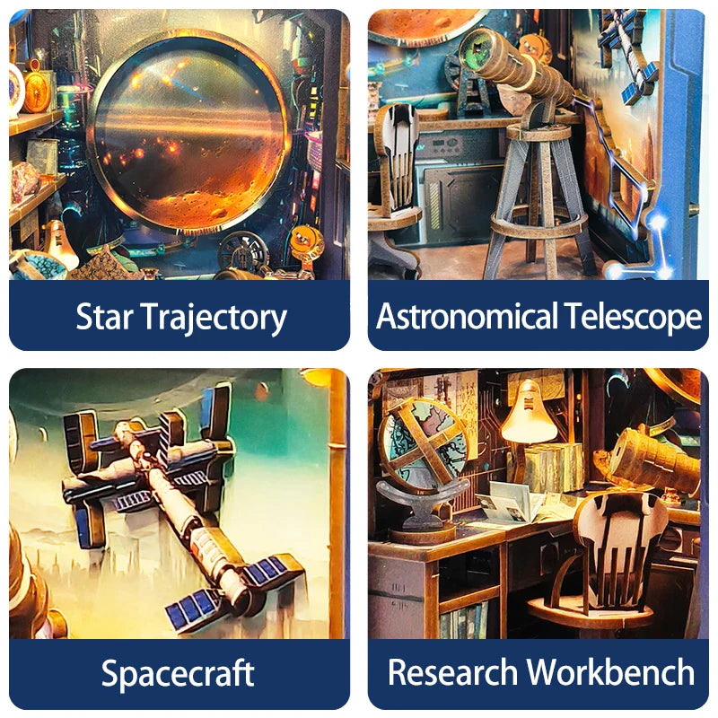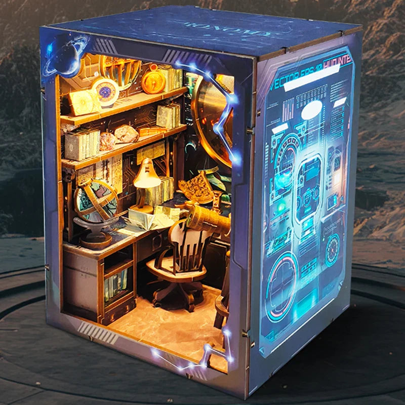Explore the stars from your bookshelf with this DIY Wooden Book Nook featuring the Institute of Astronomy — a beautifully detailed miniature model kit with lights, perfect as a creative gift for space lovers and dreamers.