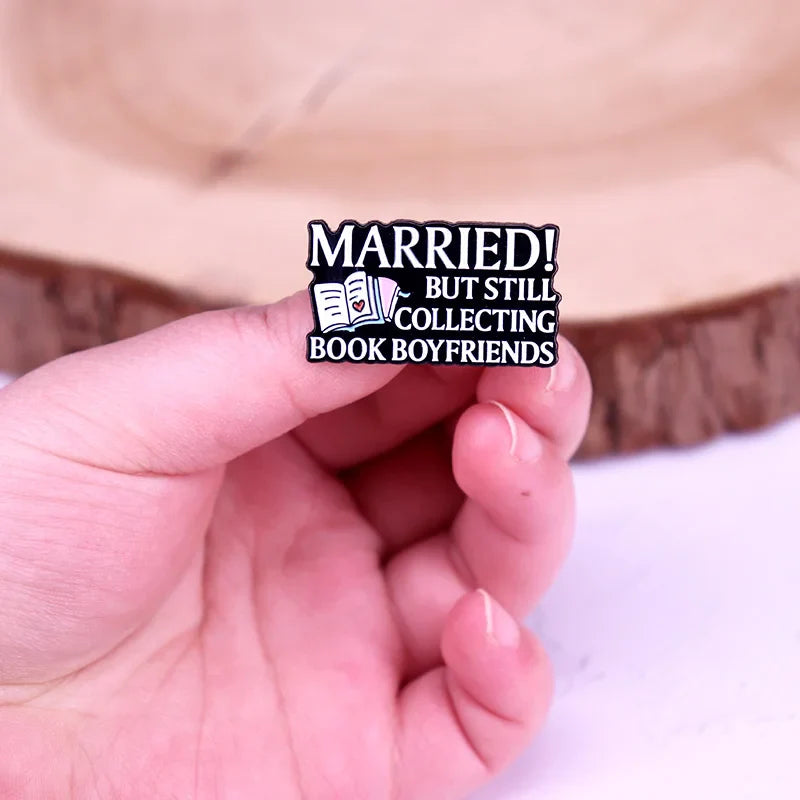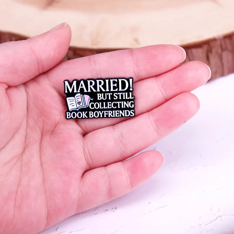 "Married but Still Collecting Book Boyfriends" Enamel Pin – For Book Lovers & Hopeless Romantics