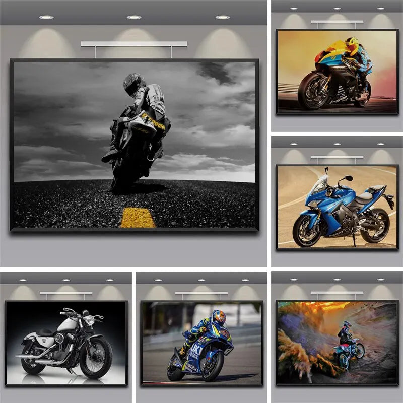 Rev up your space with this Motorcycle Racing Biker Canvas Poster, featuring dynamic imagery of high-speed sports bikes — perfect wall art for adrenaline lovers and motorsport enthusiasts.