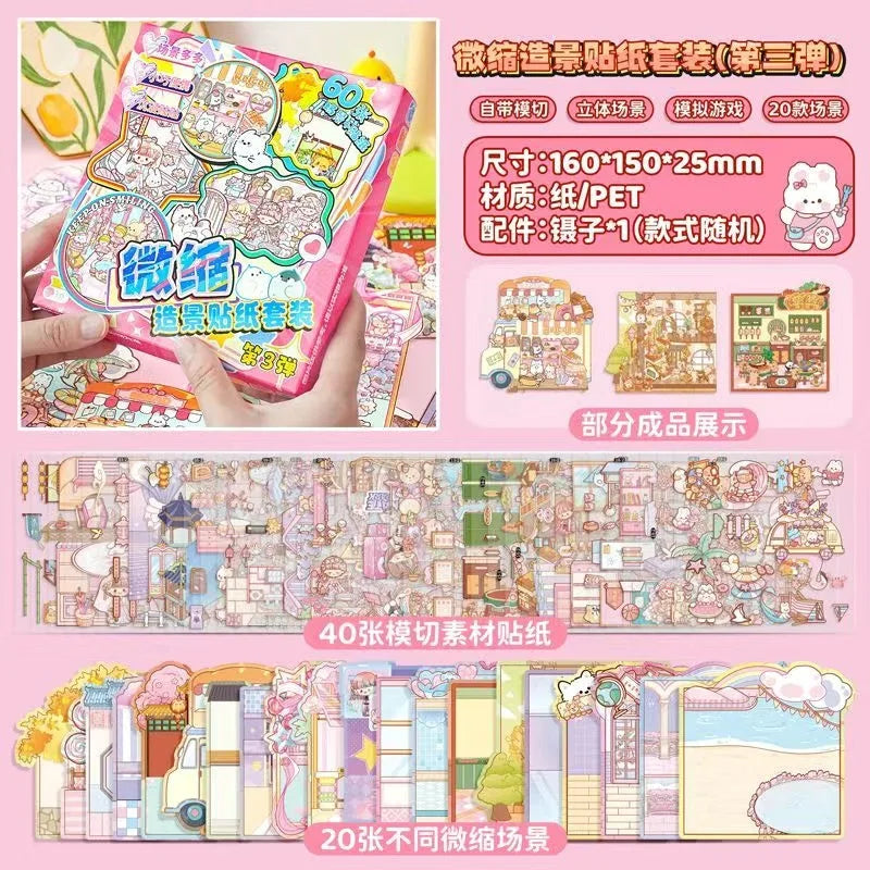 New 3D Cartoon Sticker Book – DIY Landscape Sticker Pocket Book with Cabin Scene