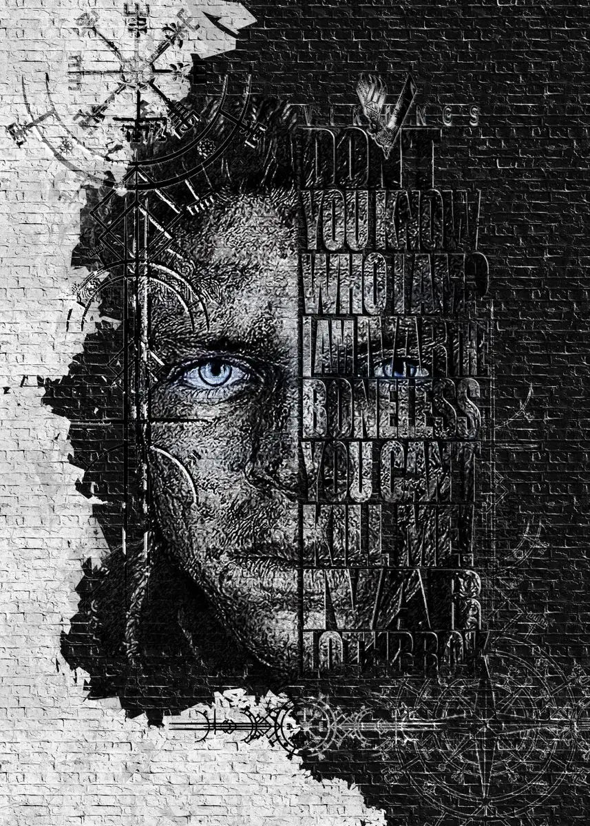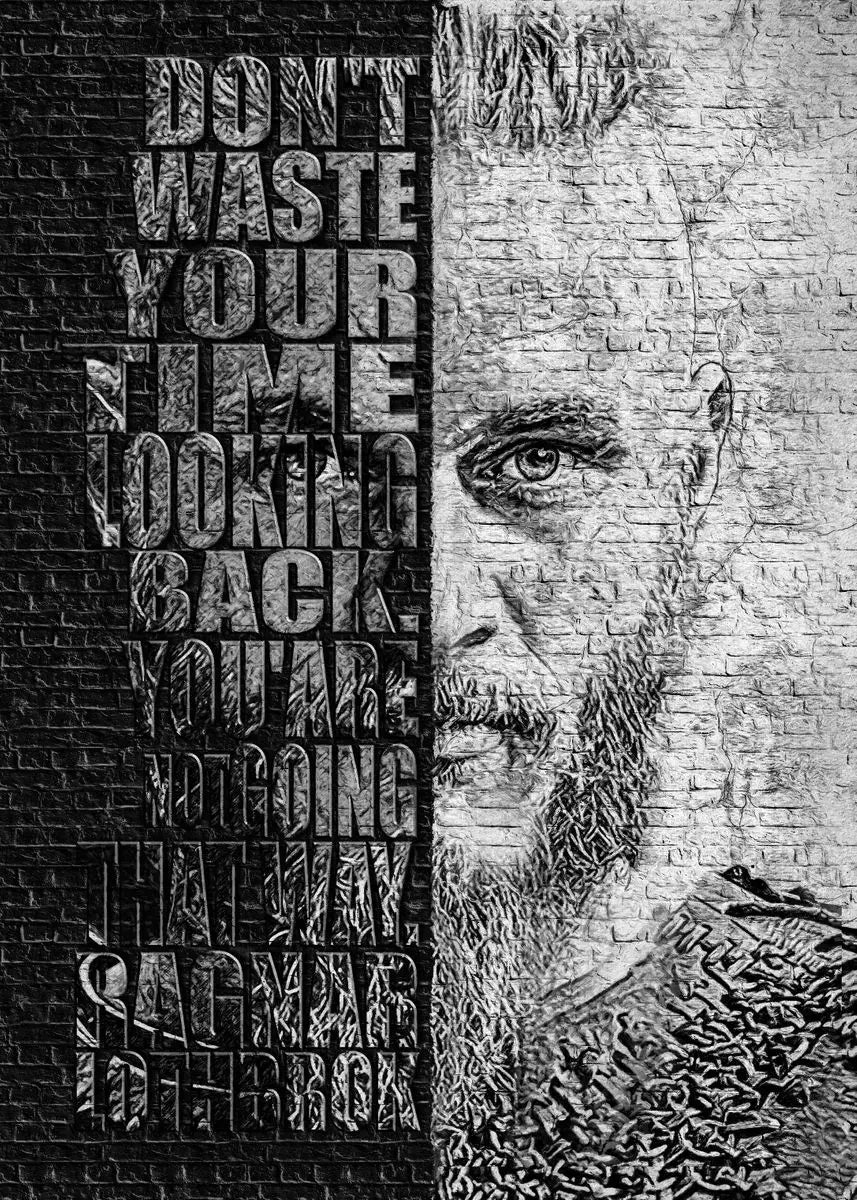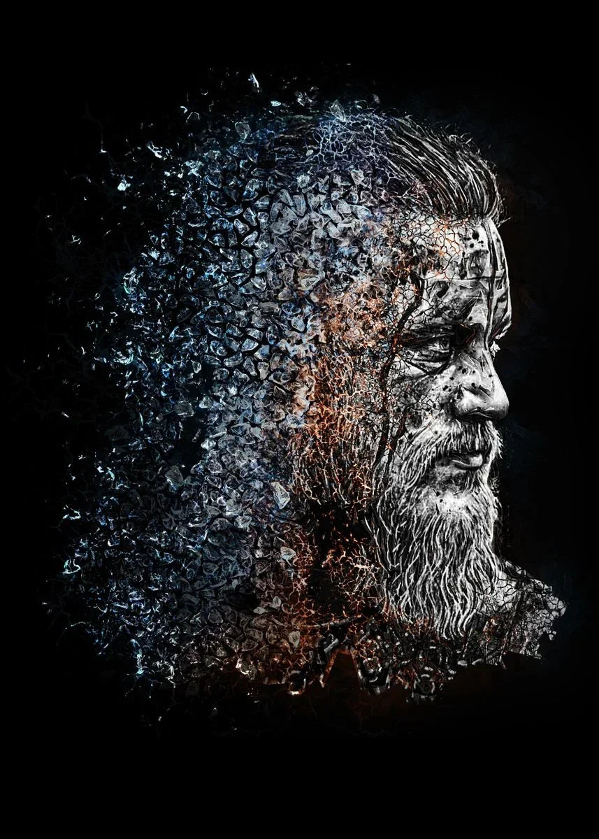 • Abstract design of Ragnar Lothbrok – blends strength and mystique with a modern art twist