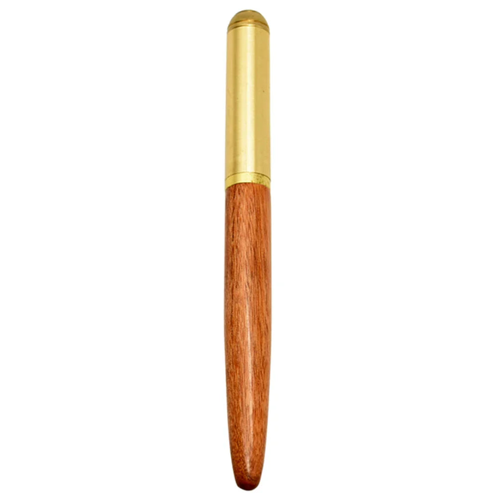 Polished natural wood barrel with bronze metal accents and a smooth 0.5mm stainless steel nib.