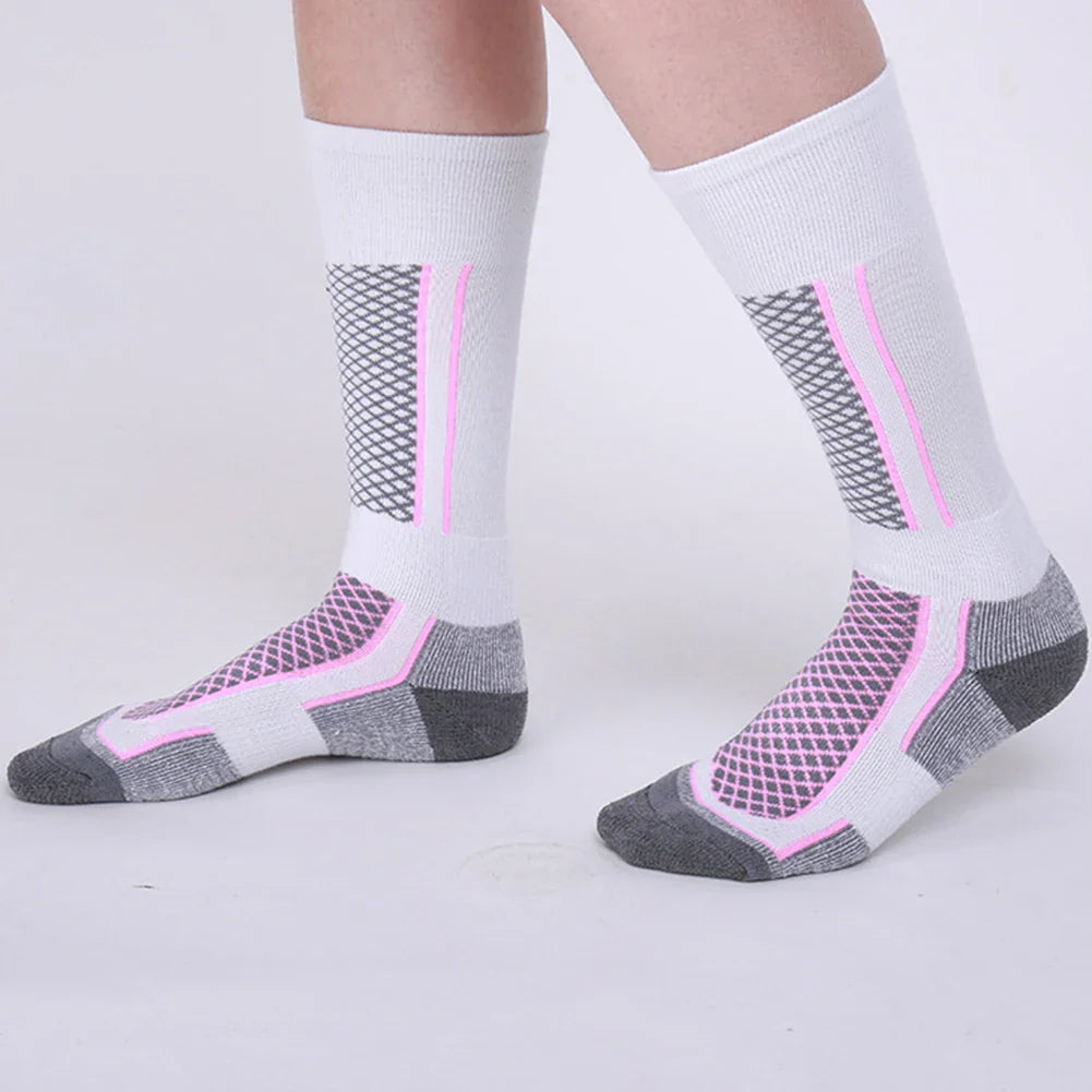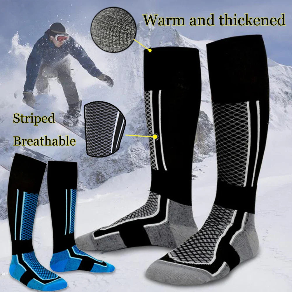Stay warm and supported on the slopes with these wool thermal ski socks — unisex winter stockings designed for snowboarding, skiing, and cold-weather sports.